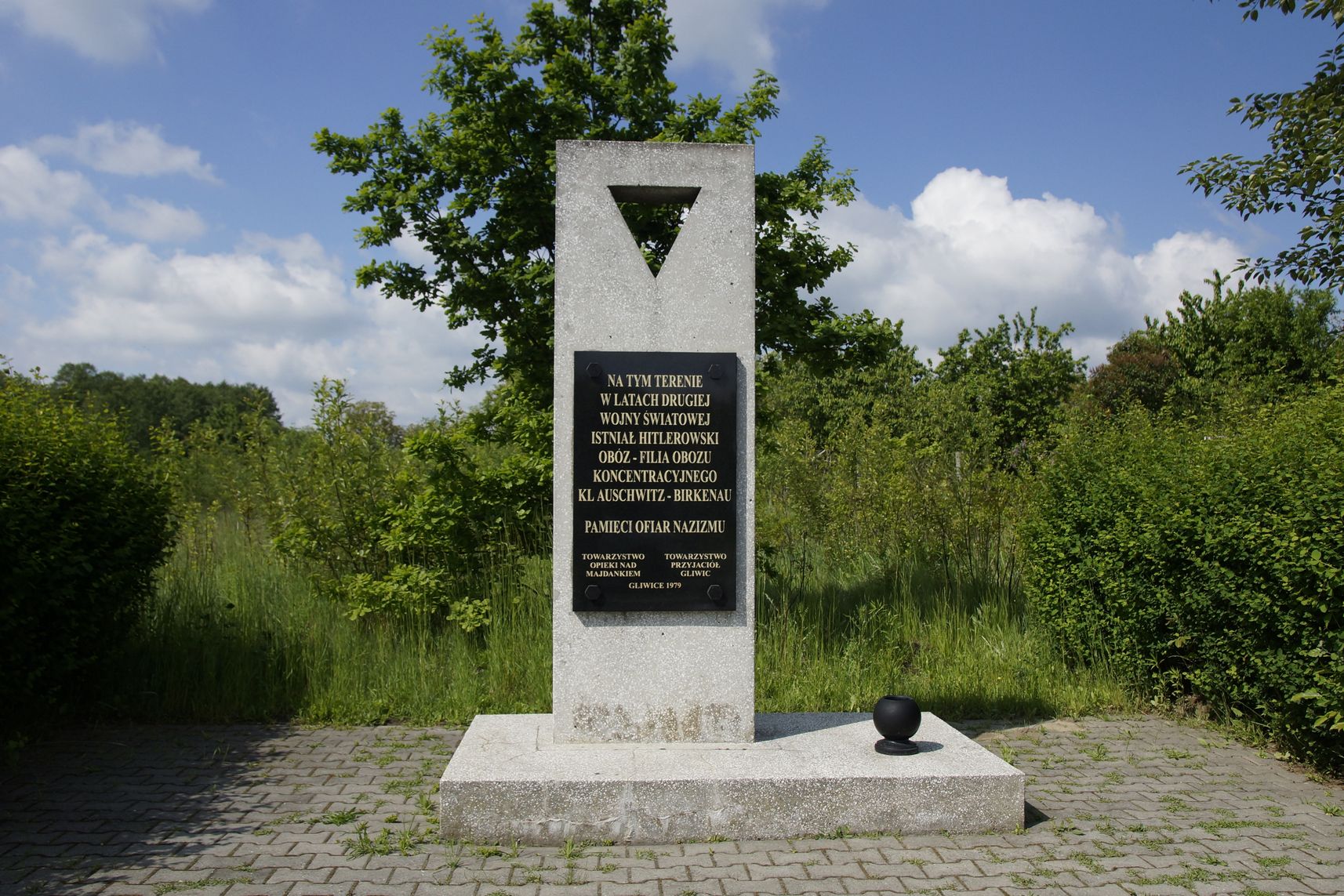 Pomnik z tablicą upamiętniający teren podobozu „Gleiwitz II” KL Auschwitz w Gliwicach, który funkcjonował w latach 1944-1945. Obiekt powstał w 1979 r.