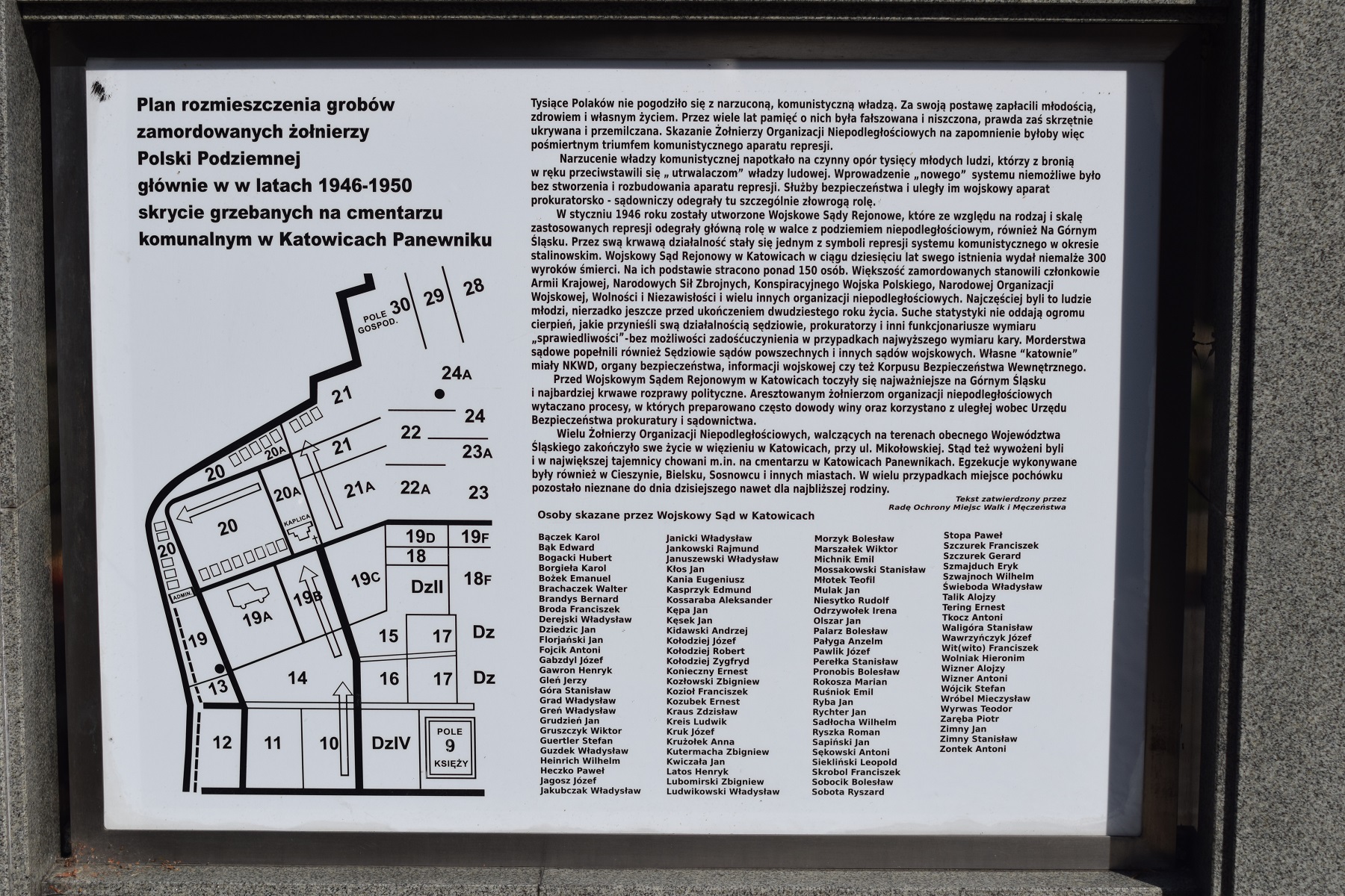 2 września 2020 r., w 75. rocznicę powołania Zrzeszenia Wolność i Niezawisłość, Ryszard Mozgol, naczelnik Oddziałowego Biura Edukacji Narodowej IPN w Katowicach oraz Jan Kwaśniewicz, naczelnik Oddziałowego Biura Upamiętniania i Walk i Męczeństwa IPN w Katowicach złożyli kwiaty pod Pomnikiem Ofiar Stalinizmu w Katowicach (cmentarz komunalny przy ul. Panewnickiej 45). Pomnik upamiętnia żołnierzy Konspiracyjnego Wojska Polskiego, Narodowych Sił Zbrojnych, Zrzeszenia Wolność i Niezawisłość, samodzielnych grup poakowskich, więźniów politycznych okresu stalinowskiego działających na Górnym Śląsku, zamordowanych i pochowanych skrycie w latach 1945−1956.
