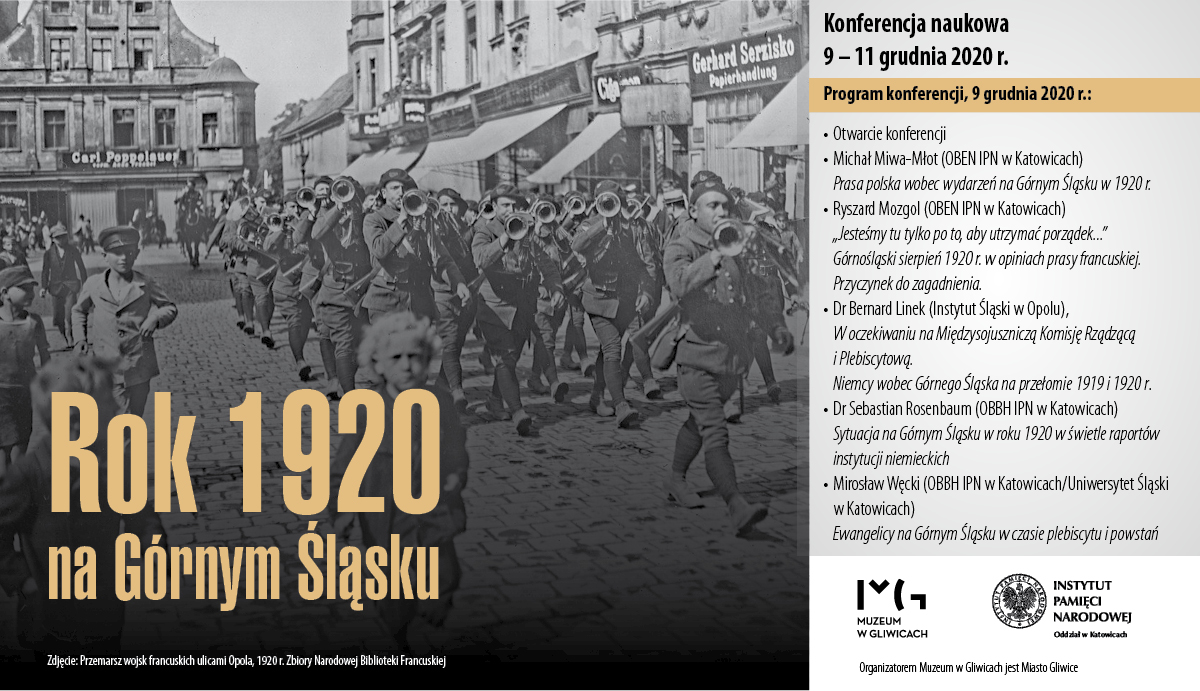 Konferencja naukowa online „Rok 1920 na Górnym Śląsku“ – Gliwice, 9–11 grudnia 2020