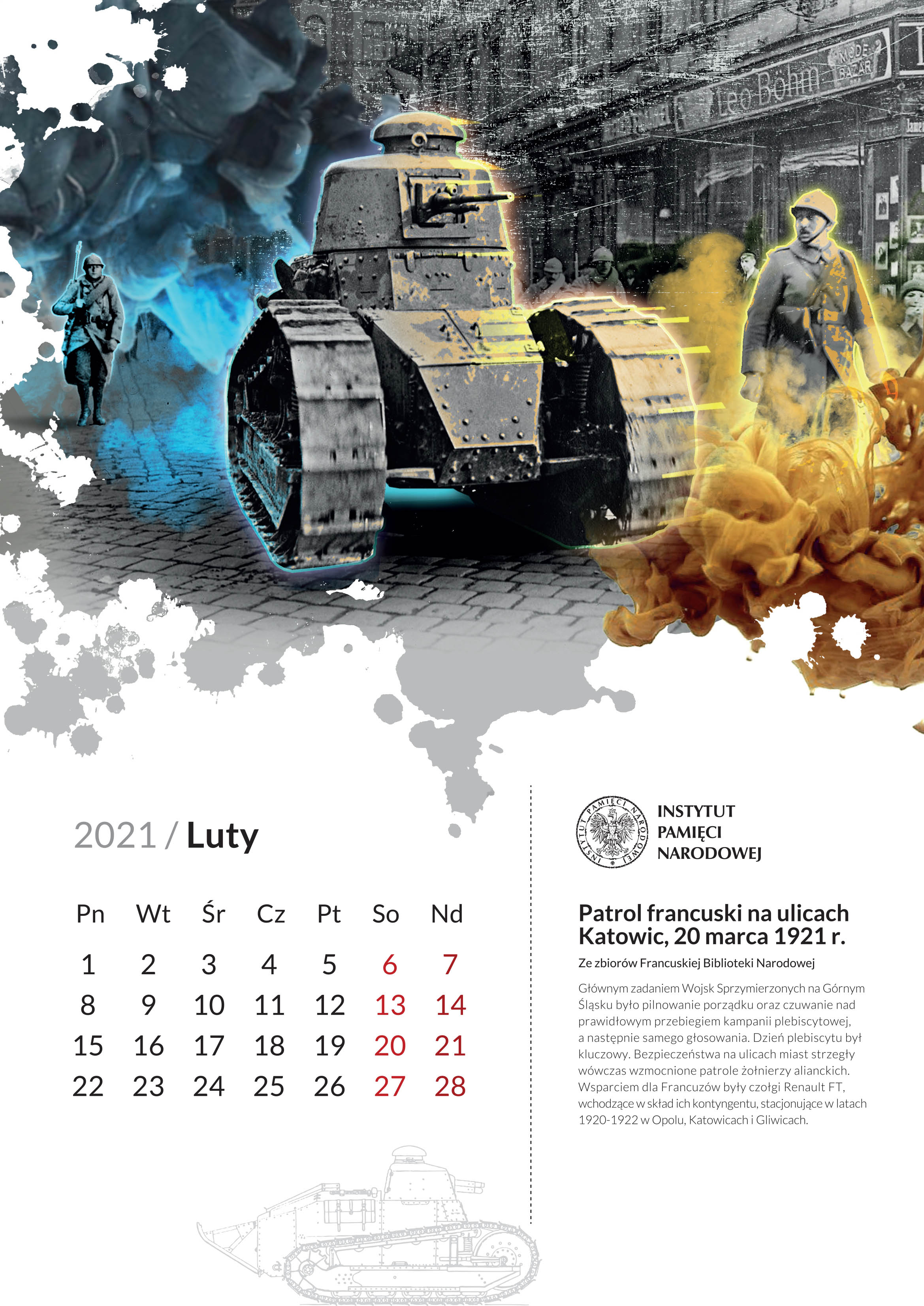 Drugi kalendarz z cyklu „Z myślą o Niepodległej” poświęcony jest wydarzeniom roku 1919 na Górnym Śląsku. Kalendarz zawiera zdjęcia związane z czesko-polskim konfliktem o Śląsk Cieszyński oraz I powstaniem śląskim. Z kart kalendarza spoglądają nasi przodkowie, czynnie realizujący wyszytą na sztandarach maksymę „Ojczyzno moja, gdy Cię mogę wspierać, nie żal mi cierpieć, nie żal mi umierać”. To dzięki ich ofiarności i poświęceniu Śląsk po kilku stuleciach powrócił do Polski.