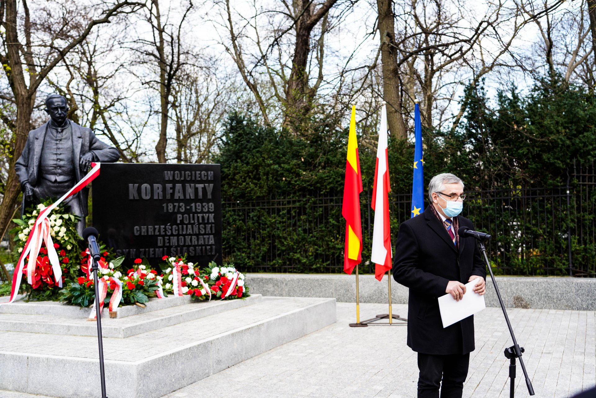 Instytut Pamięci Narodowej reprezentowali: dyrektor Biura Upamiętniania Walk i Męczeństwa Adam Siwek oraz dyrektor Oddziału IPN w Katowicach dr Andrzej Sznajder. Pierwszym punktem uroczystości było odsłonięcie napisu na postumencie – „Syn Ziemi Śląskiej”, który mówi o pochodzeniu Wojciecha Korfantego. Komisja konkursowa w 2019 r. uznała, że hasło „Polityk śląski” spłaszcza rolę Wojciecha Korfantego w walce o niepodległą Polskę.
