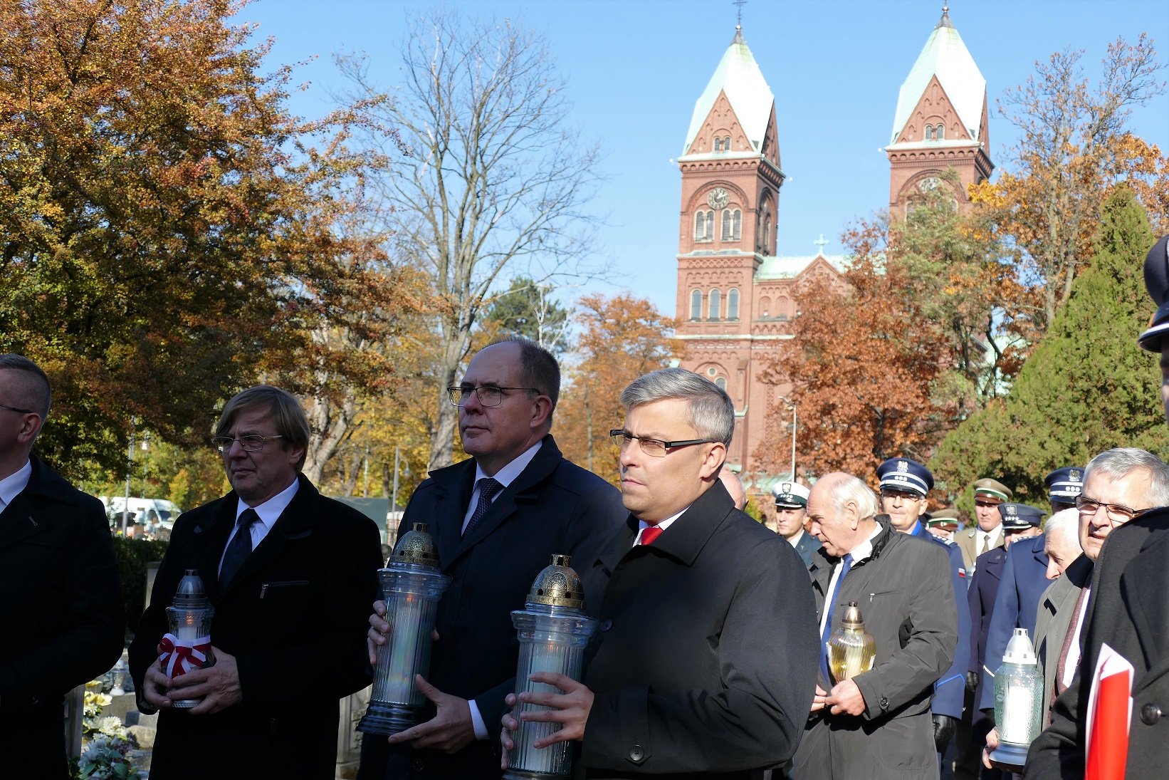 W związku z uroczystością Wszystkich Świętych dr Andrzej Sznajder, dyrektor Oddziału Instytutu Pamięci Narodowej w Katowicach wraz z wojewodą śląskim Jarosławem Wieczorkiem oraz przedstawicielami środowisk kombatanckich, władz samorządowych i służb mundurowych złożyli kwiaty i zapalili znicze na grobach wybitnych, zasłużonych Polaków spoczywających na nekropoliach województwa śląskiego.