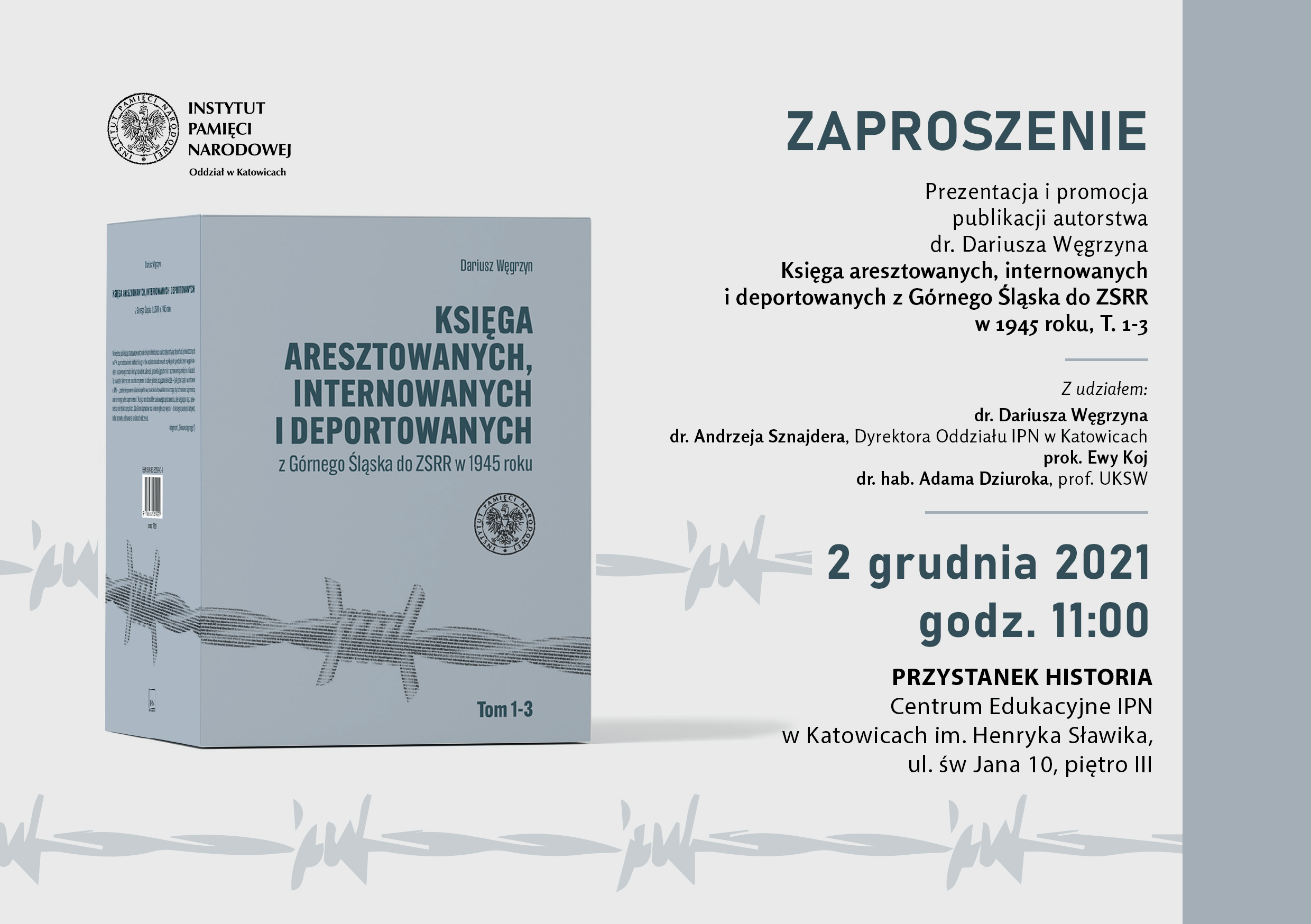 2 grudnia 2021 r. o godz. 11.00 w  Przystanku Historia – Centrum Edukacyjnym im. Henryka Sławika w Katowicach przy ul. św. Jana 10 (III piętro) odbyła się prezentacja książki dr. Dariusza Węgrzyna „Księga aresztowanych, internowanych i deportowanych z Górnego Śląska do ZSRR w 1945 roku” dla dziennikarzy.