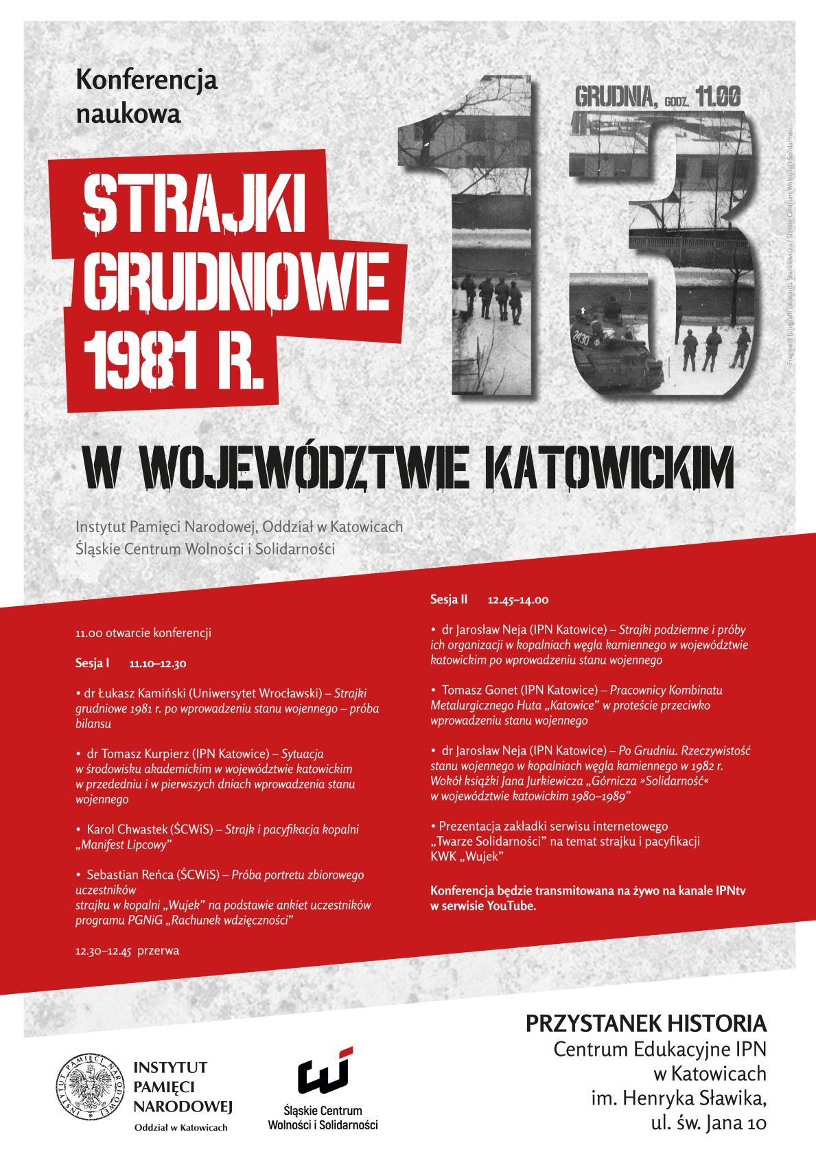 13 grudnia 2021 r. w Przystanku Historia – Centrum Edukacyjnym IPN w Katowicach im. Henryka Sławika, przy ul. św. Jana 10 (III piętro) odbyła się konferencja naukowa „Strajki grudniowe 1981 r. w województwie katowickim“. Wydarzenie było transmitowane na kanale Youtube IPNtv Katowice