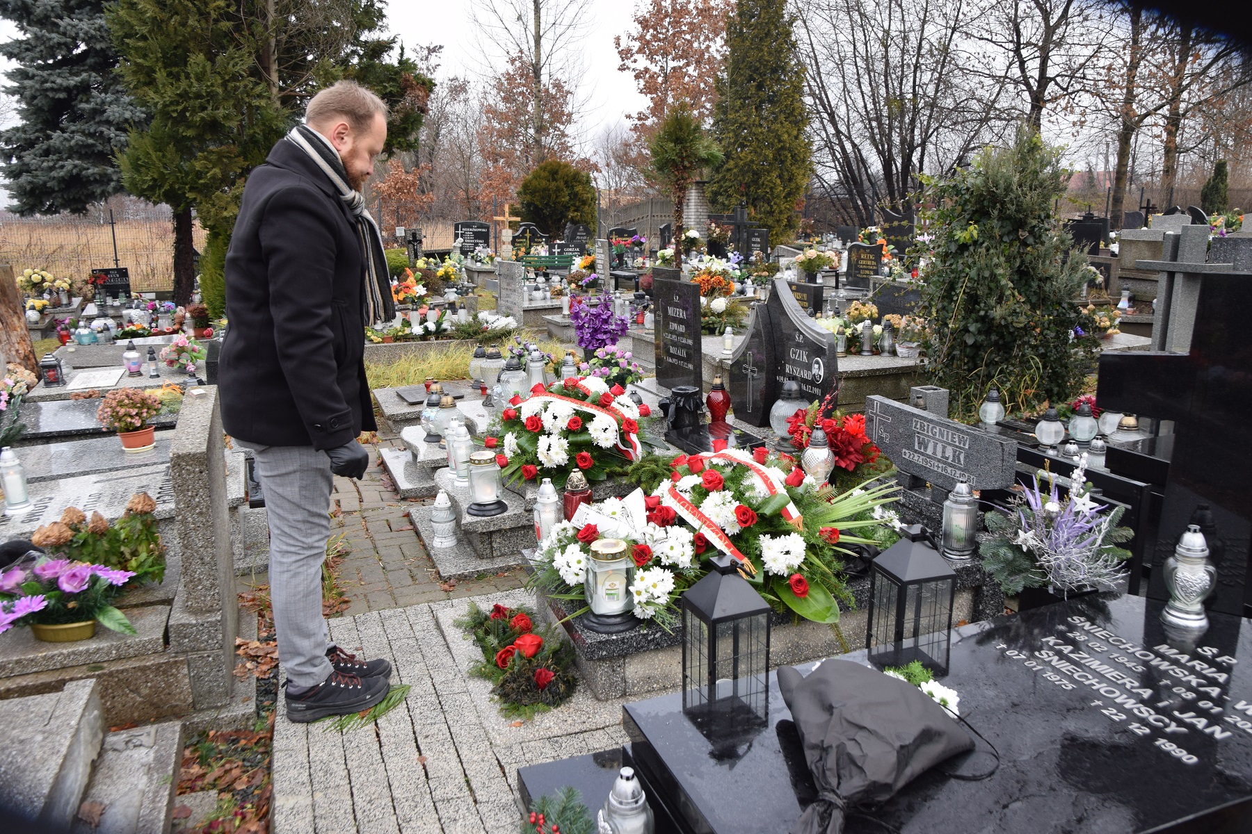 16 grudnia 2021 r. Prezes IPN dr Karol Nawrocki oraz dr Andrzej Sznajder, dyrektor Oddziału IPN w Katowicach złożyli kwiaty na grobie Józefa Czekalskiego. Fot. Mikołaj Bujak/IPN -