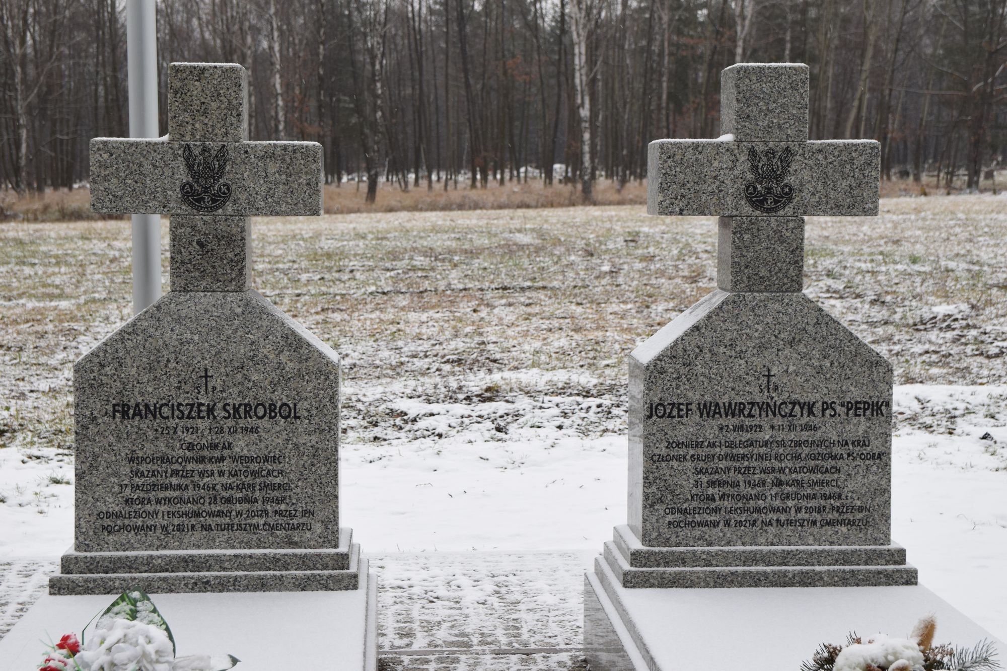 Groby śp. Franciszka Skrobola oraz Józefa Wawrzyńczyka w kwaterze Żołnierzy Niezłomnych na cmentarzu komunalnym w Katowicach. -
