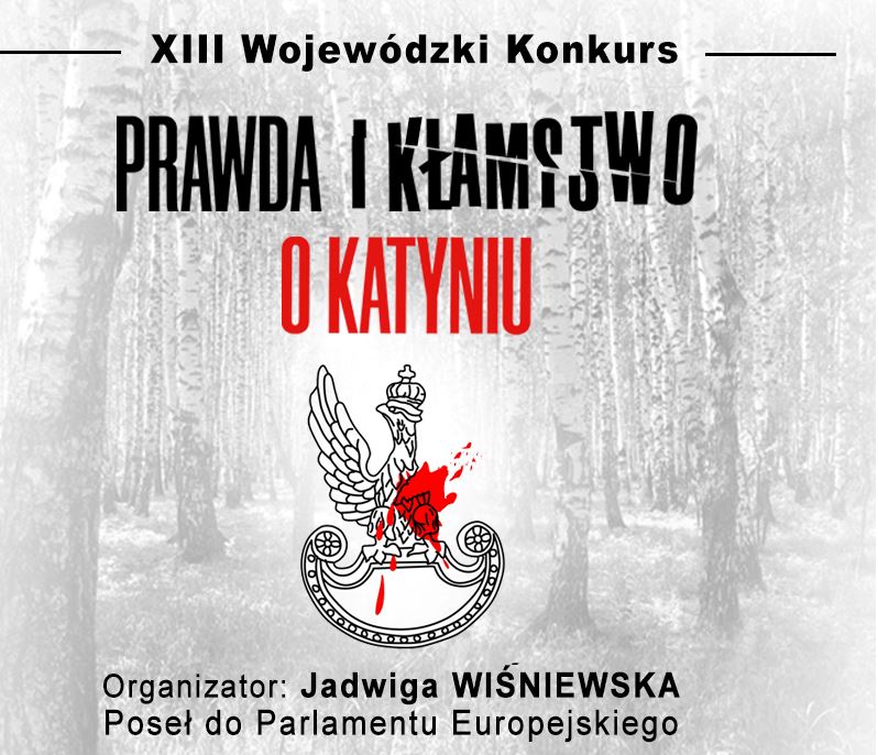 W 2010 r. wystąpiłam z inicjatywą konkursu, który wpisuje się w proces zachowania pamięci o zbrodni na polskich żołnierzach w 1940 r. Dziś, Konkurs „Prawda i kłamstwo o Katyniu” zajmuje stałe miejsce w kalendarzu wydarzeń historycznych województwa śląskiego i stanowi niewyczerpane źródło inspiracji do poszukiwania i odkrywania prawdy o tym bolesnym fragmencie naszej historii – Jadwiga Wiśniewska, Poseł do Parlamentu Europejskiego.