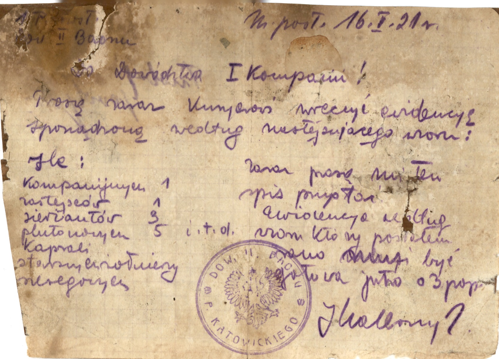 Materiały dotyczące powstań śląskich i plebiscytu z 1921 r. są dość skąpo reprezentowane w zasobie Oddziałowego Archiwum IPN w Katowicach. Podobnie jest zresztą z dokumentacją z całego dwudziestolecia międzywojennego: nieliczne akta sprzed II wojny światowej (a właściwie sprzed czasów PRL) znalazły się w zasobie archiwum przypadkowo, jako dokumenty dołączone najczęściej do spraw sądowych lub operacyjnych komunistycznego aparatu bezpieczeństwa.
