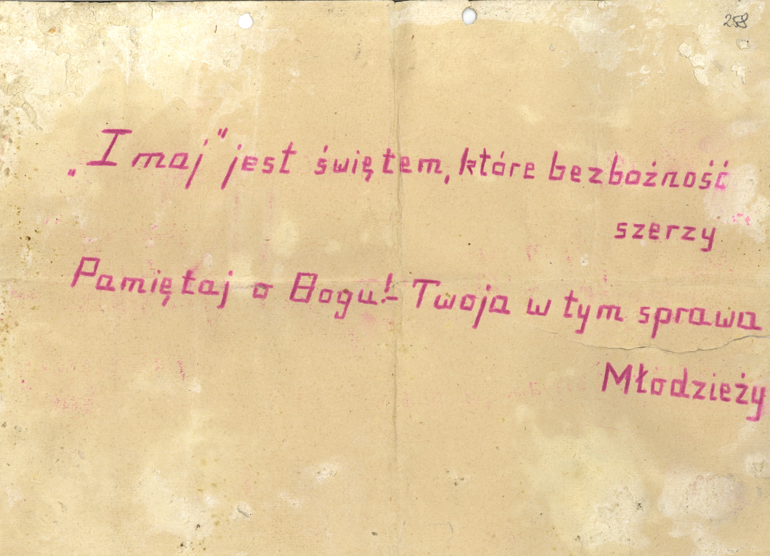 Ulotka nawołująca do bojkotu obchodów 1 maja w 1953 r., kolportowana na terenie Śląskiej Akademii Medycznej w Zabrzu, IPN Ka 230_6096, t. 2(2) -