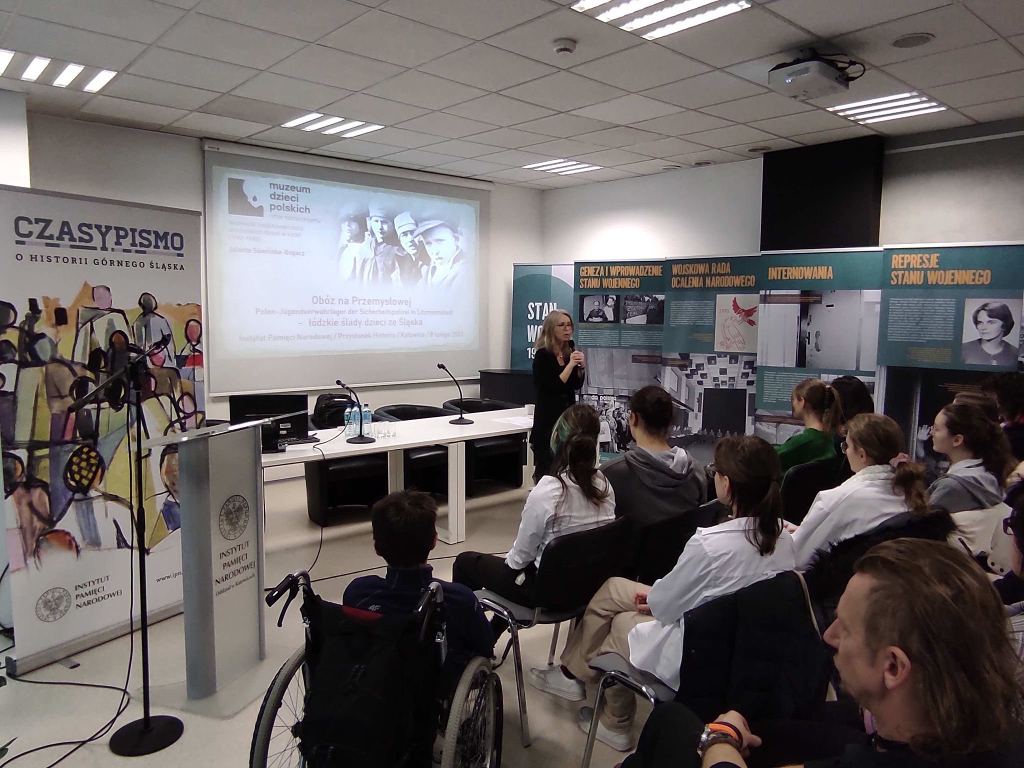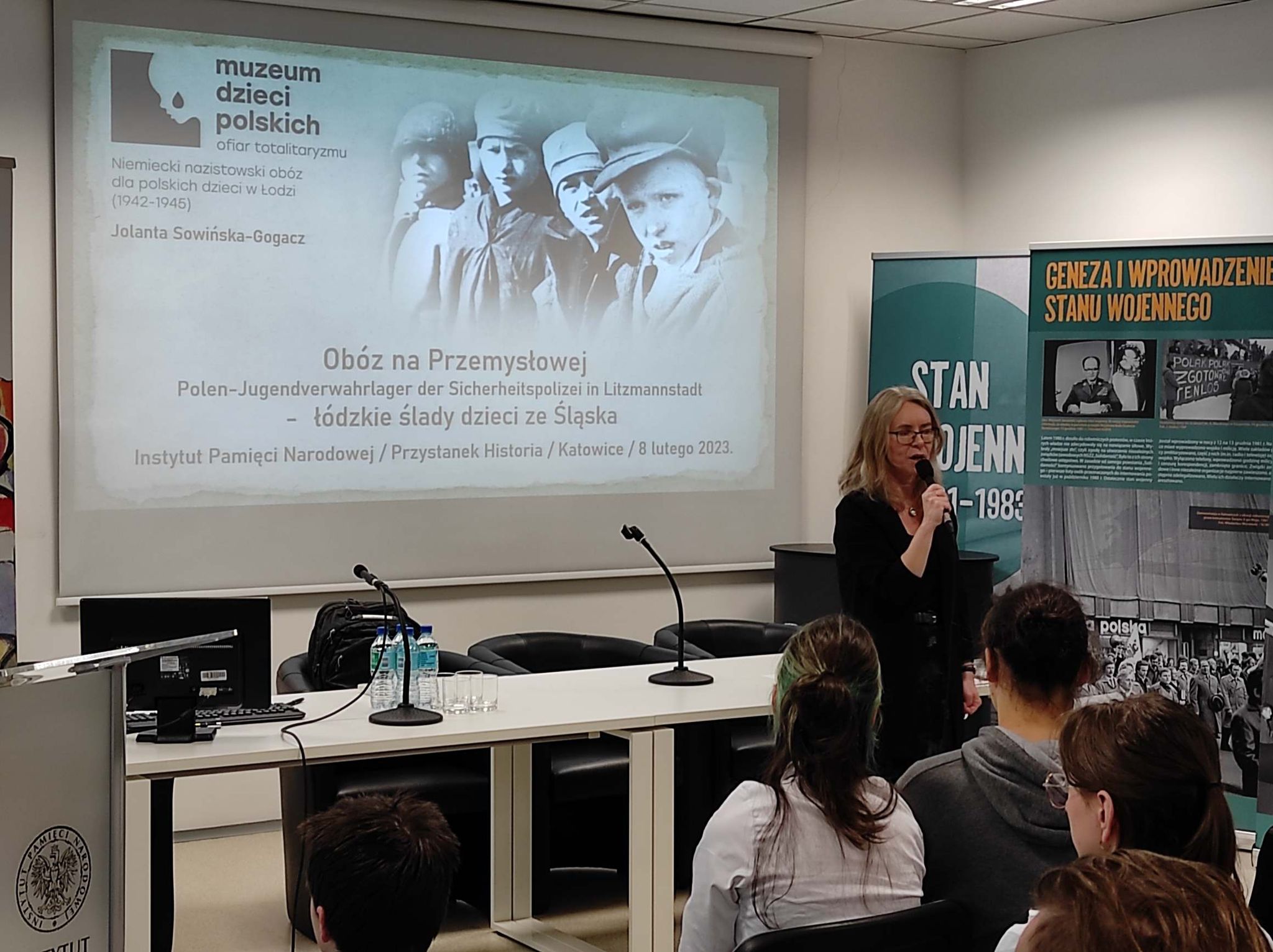 W środę, 8 lutego 2023 r., o godz. 12.00 w Przystanku Historia – Centrum Edukacyjnym IPN im. Henryka Sławika w Katowicach, przy ul. św. Jana 10 (3 piętro), odbył się wykład Jolanty Sowińskiej-Gogacz „Obóz na Przemysłowej – łódzkie ślady dzieci ze Śląska”. Wykład towarzyszył projektowi edukacyjnemu IV Bieg Pamięci Ze Światłem Pokoju, który zorganizowano w 78. rocznicę „marszu śmierci” Auschwitz-Gleiwitz.