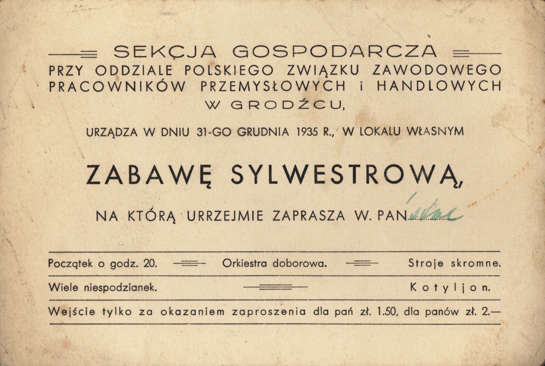 Zaproszenie na zabawę sylwestrową, 31 XII 1935 r. -
