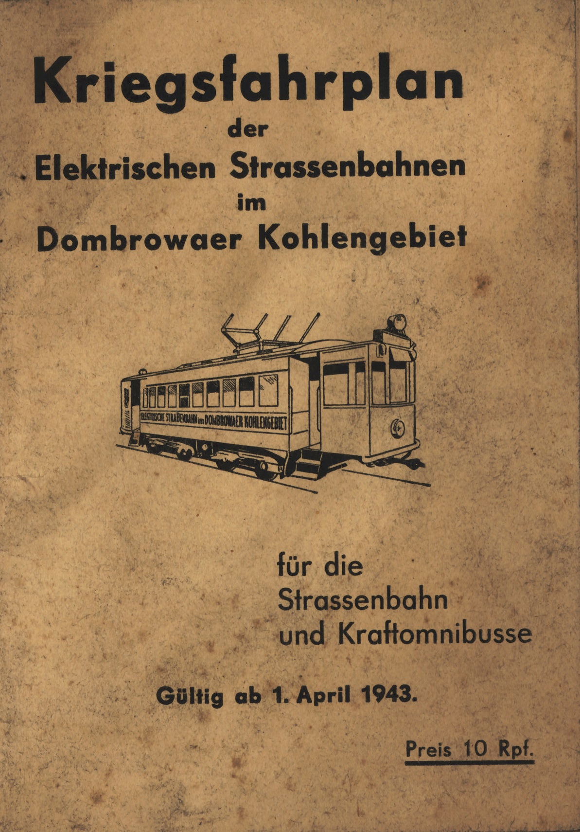 Rozkład jazdy autobusów i tramwajów na terenie Będzina, Dąbrowy Górniczej i Sosnowca w 1943 r., IPN Ka 1025/6
