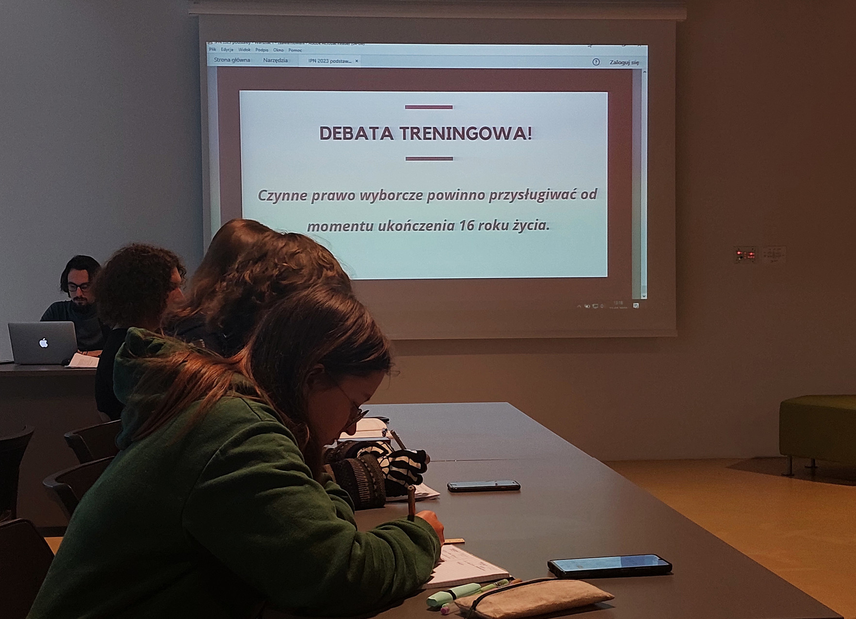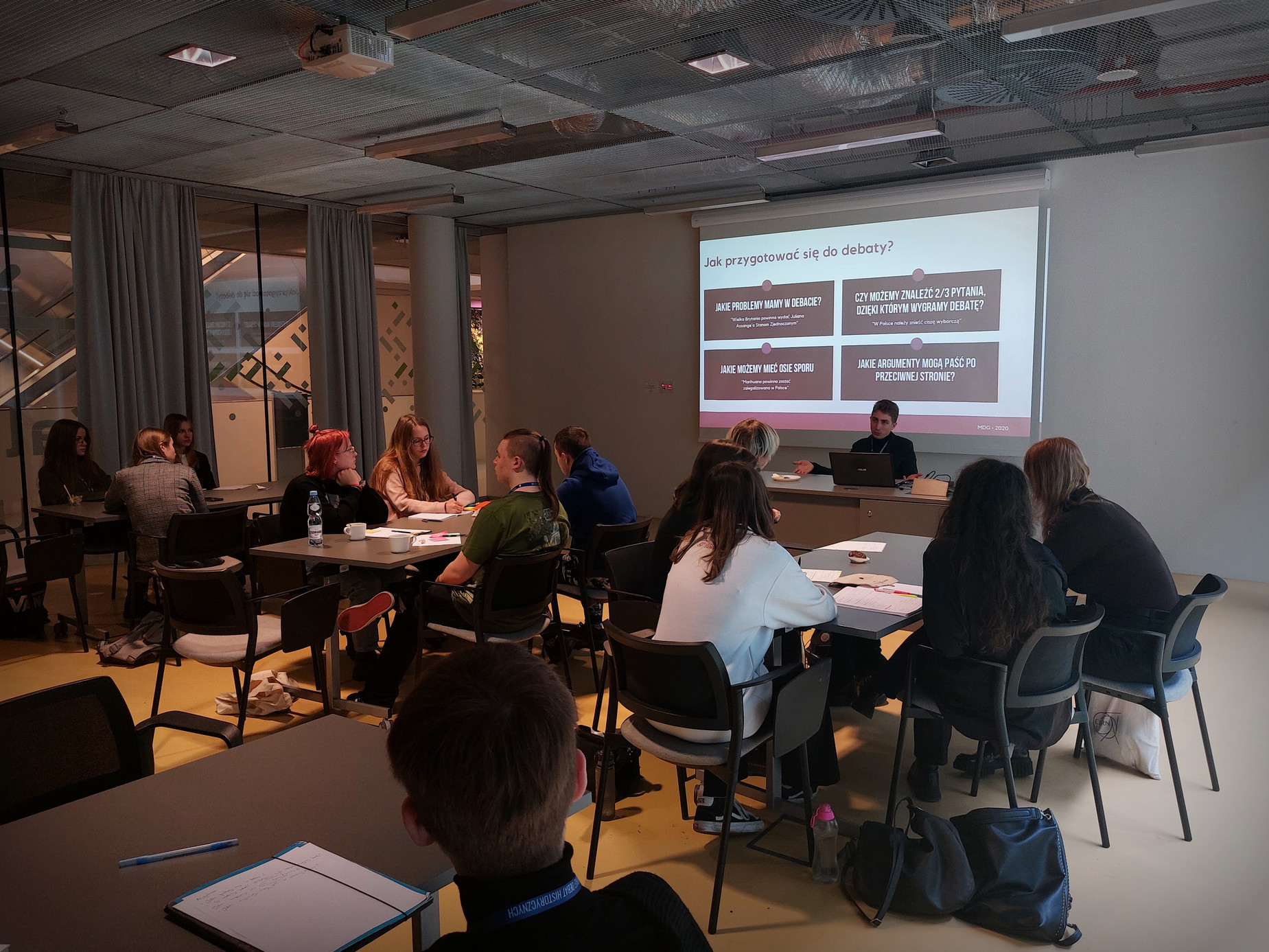 Pierwszego dnia drużyny doskonaliły swoje umiejętności debatanckie w dwóch grupach, pod okiem przedstawicieli Fundacji Altiorem – Kamila Berycha i Jakuba Płonki, a zwieńczeniem ich wysiłków był udział w debacie treningowej, przeprowadzonej w końcowej części warsztatów.