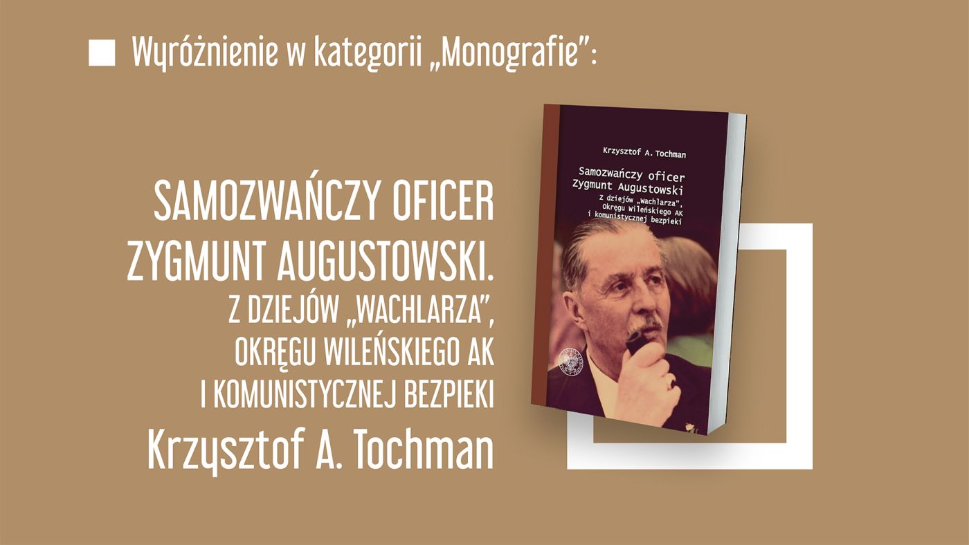 Wyróżnienie: Krzysztof A. Tochman, Samozwańczy oficer Zygmunt Augustowski. Z dziejów „Wachlarza”, Okręgu Wileńskiego AK i komunistycznej bezpieki, Rzeszów–Warszawa 2022