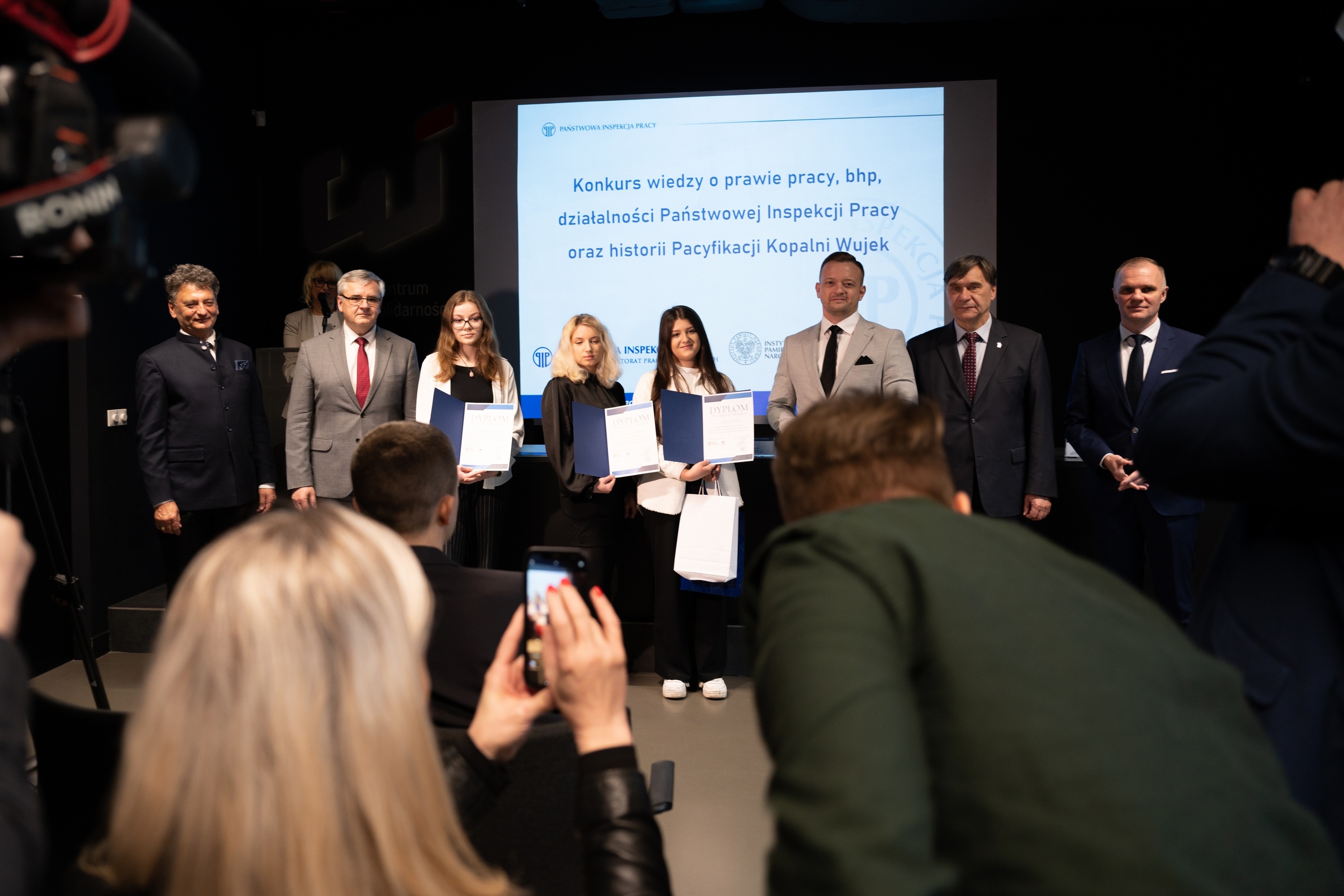 Finał "Konkursu wiedzy o prawie pracy, bhp i działalności Państwowej Inspekcji Pracy oraz historii Pacyfikacji Kopalni "Wujek" odbył się w siedzibie Śląskiego Centrum Wolności i Solidarności.
