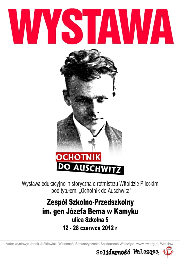 W dniach od 11 do 28 czerwca 2012 r. w Zespole Szkolno-Przedszkolnym im. gen. Józefa Bema w Kamyku (ul. Szkolna 5) jest prezentowana wystawa „Rotmistrz Witold Pilecki – ochotnik do Auschwitz”. Ekspozycja została przygotowana przez Jacka Jaśkiewicza ze Stowarzyszenia Solidarność Walcząca. Organizatorem prezentacji wystawy jest OBEP IPN w Katowicach we współpracy z Zespołem Szkolno-Przedszkolnym im. gen. Józefa Bema w Kamyku i Stowarzyszeniem Solidarność Walcząca we Wrocławiu.