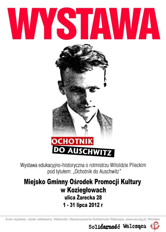 W dniach od 1 do 31 lipca 2012 r. w Miejsko-Gminnym Ośrodku Promocji Kultury w Koziegłowach (ul. Żarecka 28) prezentowana jest wystawa „Rotmistrz Witold Pilecki – ochotnik do Auschwitz”. Ekspozycja została przygotowana przez Jacka Jaśkiewicza ze Stowarzyszenia Solidarność Walcząca. Organizatorem prezentacji wystawy jest OBEP IPN w Katowicach we współpracy z Miejsko-Gminnym Ośrodkiem Promocji Kultury w Koziegłowach i Stowarzyszeniem Solidarność Walcząca we Wrocławiu.