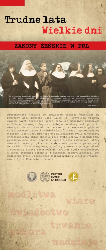 Od 9 do 16 sierpnia 2012 r. w kościele pod wezwaniem NMP Królowej Polski w Bielsku – Białej (ul. NMP Królowej Polski 15) prezentowana będzie wystawa „Trudne lata – wielkie dni. Zakony żeńskie w PRL”,  przygotowana przez Ośrodek Badań nad Geografią Historyczną Kościoła w Polsce Katolickiego Uniwersytetu Lubelskiego Jana Pawła II, Oddziałowe Biuro Edukacji Publicznej Instytutu Pamięci Narodowej w Katowicach oraz Biuro Historyczne przy Konferencji Wyższych Przełożonych Żeńskich Zgromadzeń Zakonnych w Polsce.