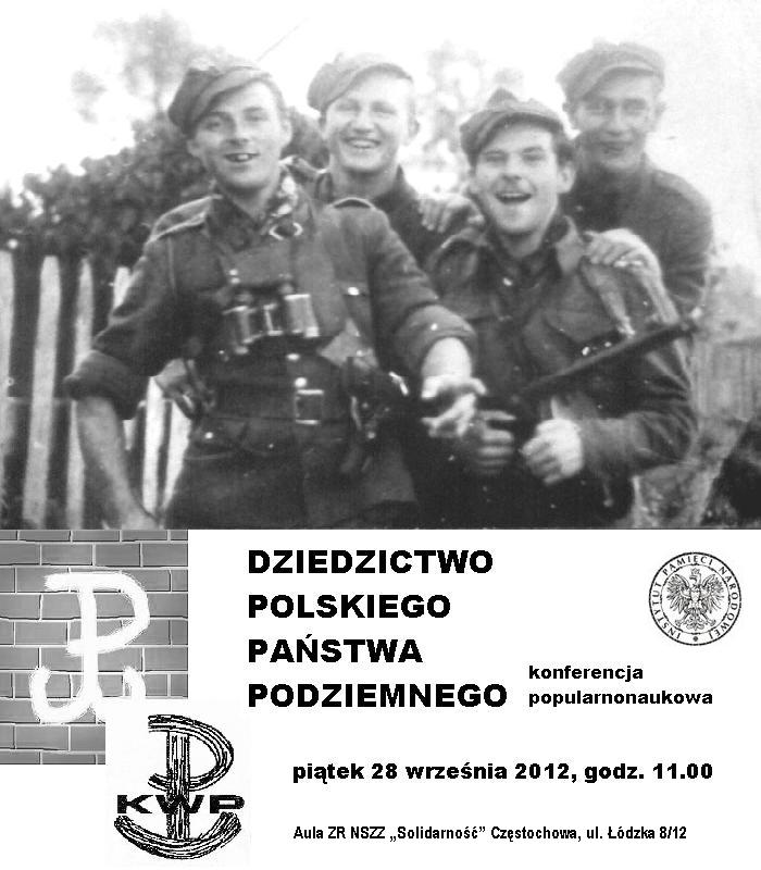 Konferencja popularnonaukowa „Dziedzictwo Polskiego Państwa Podziemnego” – Częstochowa, 28 września 2012