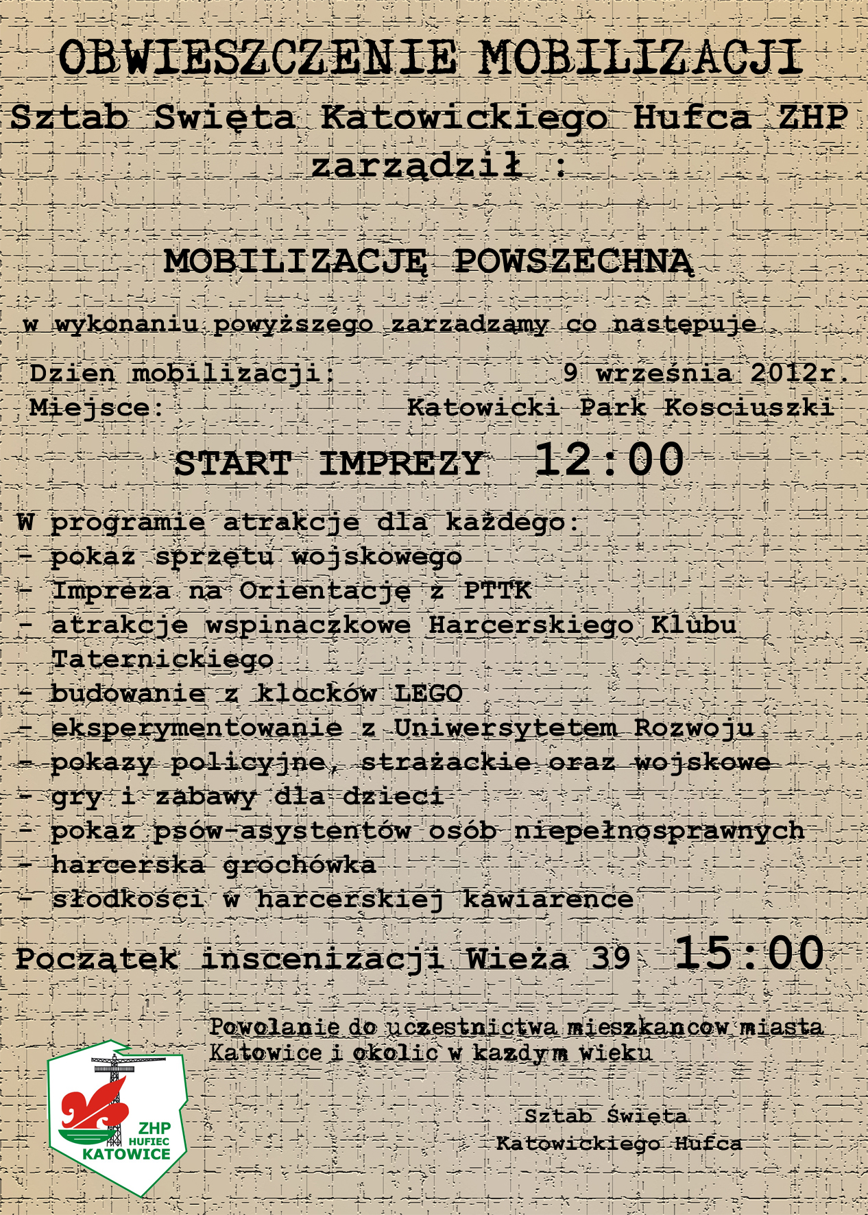 W dniach 8–9 września 2012 r. odbywały się obchody Święta Katowickiego Hufca ZHP im. Bohaterów Wieży Spadochronowej.