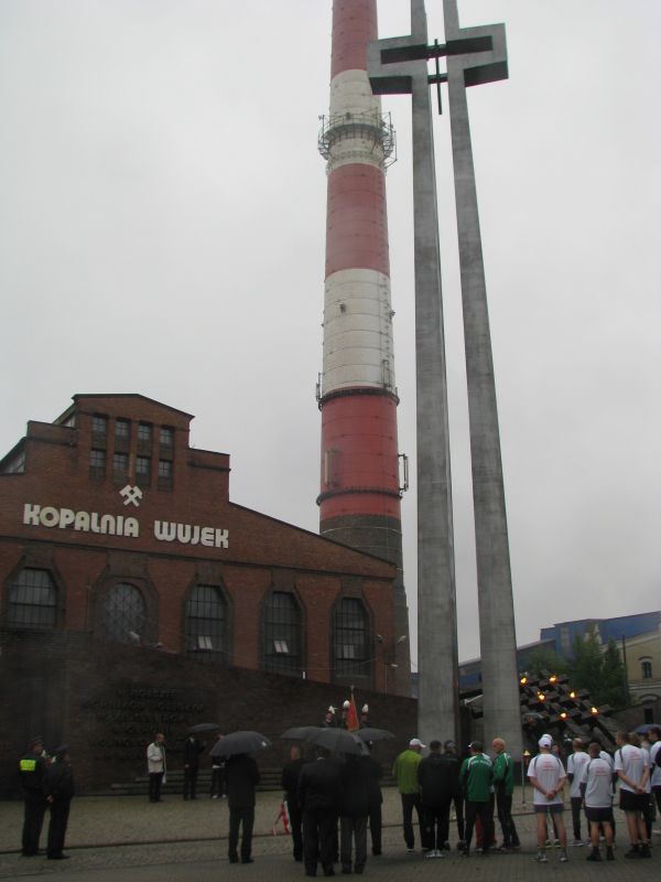 Składanie kwiatów pod pomnikiem bł. Jana Pawła II - 7.45 – Przemarsz pod pomnik Poległych Górników KWK „Wujek”