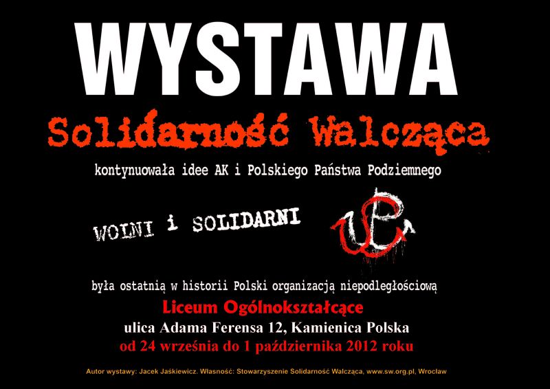 W dniach od 24 września do 1 października 2012 r. w Liceum Ogólnokształcącym w Kamienicy Polskiej (ul. Adama Ferensa 12) prezentowana jest wystawa „Wolni i Solidarni”, przygotowana przez Jacka Jaśkiewicza z wrocławskiego Stowarzyszenia Solidarność Walcząca. Organizatorem prezentacji wystawy jest OBEP IPN w Katowicach we współpracy z Liceum Ogólnokształcącym w Kamienicy Polskiej i Stowarzyszeniem Solidarność Walcząca we Wrocławiu.