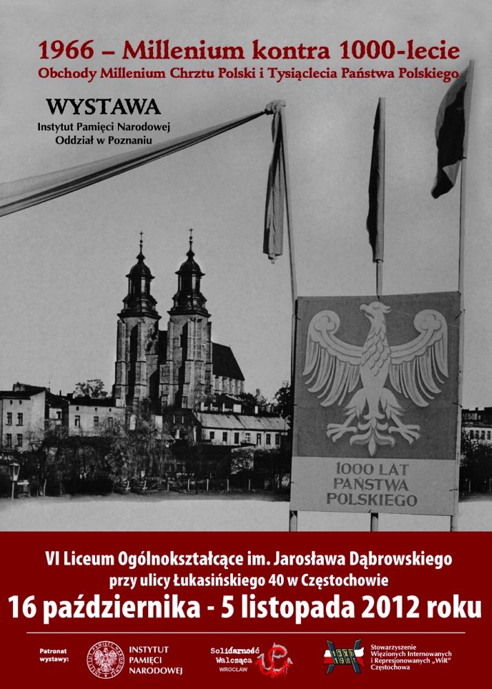 W dniach od 16 października do 5 listopada 2012 r. w VI Liceum Ogólnokształcącym im. Jarosława Dąbrowskiego w Częstochowie (ul. Łukasińskiego 40) prezentowana jest wystawa „1966 – Millenium kontra 1000-lecie”. Autorami ekspozycji są historycy z Oddziałowego Biura Edukacji Publicznej IPN w Poznaniu – dr Stanisław Jankowiak i Filip Leśniak. Wystawa przedstawia uroczyste obchody tysiąclecia przyjęcia przez Polskę chrześcijaństwa w 1966 r. oraz wysiłki podejmowane przez władze komunistyczne, aby przeszkodzić tym uroczystościom.