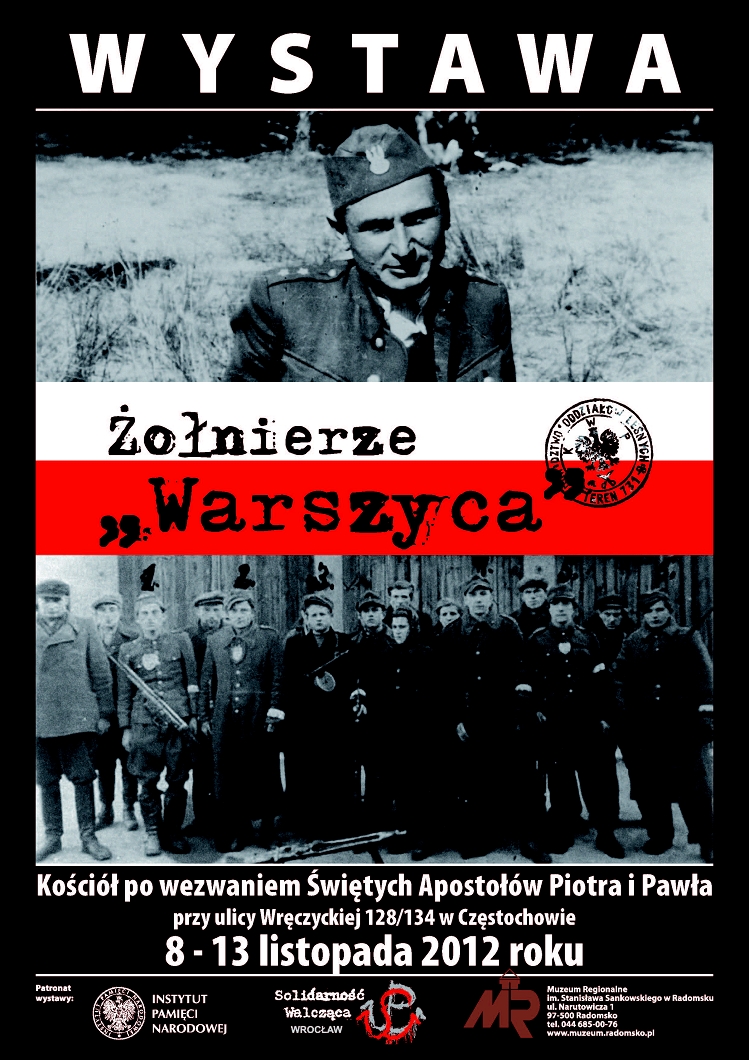 W dniach od 8 do 13 listopada 2012 r. w kościele pod wezwaniem Świętych Apostołów Piotra i Pawła w Częstochowie (ul. Wręczycka 128/134) prezentowana jest wystawa „Żołnierze »Warszyca«”, przygotowana przez OBEP IPN w Łodzi (2001). Ekspozycję wystawy zorganizował OBEP IPN w Katowicach przy współudziale Stowarzyszenia Solidarność Walcząca z Wrocławia oraz Muzeum Regionalnego im. Stanisława Sankowskiego w Radomsku.