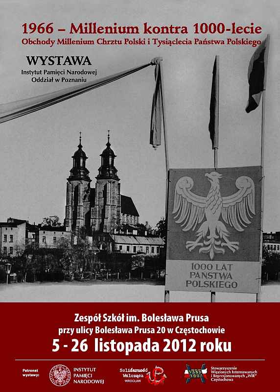 W dniach od 5 do 26 listopada 2012 r. w Zespole Szkół im. Bolesława Prusa w Częstochowie (ul. Bolesława Prusa 20) prezentowana jest wystawa „1966 – Millenium kontra 1000-lecie”. Autorami ekspozycji są historycy z Oddziałowego Biura Edukacji Publicznej IPN w Poznaniu – dr Stanisław Jankowiak i Filip Leśniak. Wystawa przedstawia uroczyste obchody tysiąclecia przyjęcia przez Polskę chrześcijaństwa w 1966 r. oraz wysiłki podejmowane przez władze komunistyczne, aby przeszkodzić tym uroczystościom.