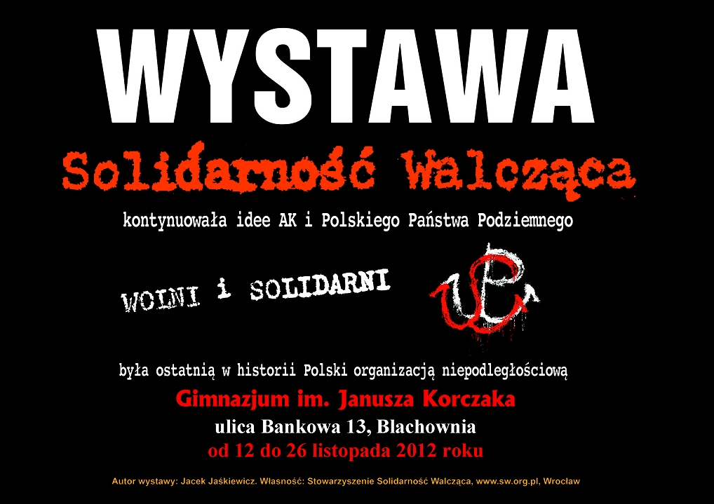 W dniach od 12 do 26 listopada 2012 r. w Gimnazjum im. Janusza Korczaka w Blachowni (ul. Bankowa 13) prezentowana jest wystawa „Wolni i Solidarni”, przygotowana przez Jacka Jaśkiewicza z wrocławskiego Stowarzyszenia Solidarność Walcząca. Organizatorem prezentacji wystawy jest OBEP IPN w Katowicach we współpracy z Gimnazjum im. Janusza Korczaka w Blachowni i Stowarzyszeniem Solidarność Walcząca we Wrocławiu.