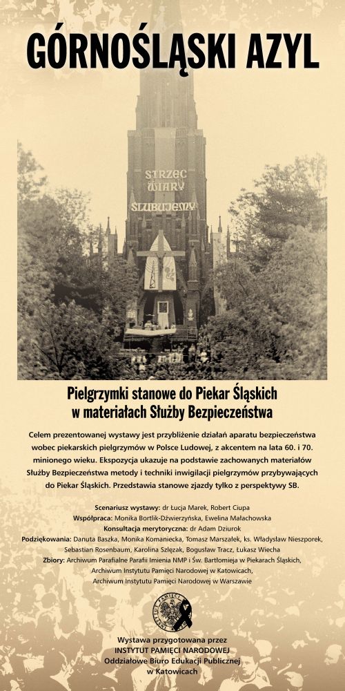 Ekspozycja prezentowana była po raz pierwszy w maju 2010 r. przy pomniku Jana Pawła II u stóp wzgórza kalwaryjskiego w Piekarach Śląskich, przy ul. ks. Ficka. Celem wystawy jest przybliżenie odbiorcom działań aparatu bezpieczeństwa wobec piekarskich pielgrzymów w Polsce Ludowej, z akcentem na lata 60. i 70. minionego wieku. Ekspozycja ukazuje na podstawie zachowanych materiałów Służby Bezpieczeństwa metody i techniki inwigilacji pielgrzymów przybywających do Piekar Śląskich. Przedstawia stanowe zjazdy wyłącznie z perspektywy Służby Bezpieczeństwa. Na wystawę składa się 26 plansz, w których wykorzystano materiały archiwalne ze zbiorów: Archiwum Parafialnego w Piekarach Śląskich, Archiwum Instytutu Pamięci Narodowej w Katowicach oraz Archiwum Instytutu Pamięci Narodowej w Warszawie. Scenariusz wystawy przygotowali historycy z katowickiego oddziału IPN: dr Łucja Marek oraz Robert Ciupa, przy współpracy Moniki Bortlik-Dźwierzyńskiej oraz Eweliny Małachowskiej, a także merytorycznym wsparciu dr. Adama Dziuroka, naczelnika Oddziałowego Biura Edukacji Publicznej IPN w Katowicach.