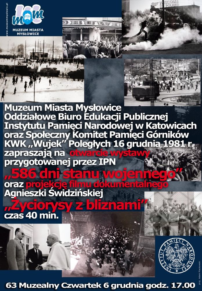 6 grudnia 2012 r. w siedzibie Muzeum Miasta Mysłowice w Mysłowicach (ul. Stadionowej 9) otwarta została wystawa „586 dni stanu wojennego” . W ramach spotkania zaprezentowano film dokumentalny autorstwa Agnieszki Świdzińskiej „Życiorysy z bliznami”, który opowiada o pacyfikacji kopalni „Wujek” i nowych faktach dotyczących tej tragedii.