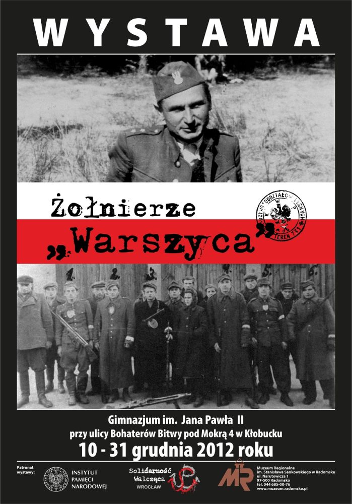 W dniach od 10 do 31 grudnia 2012 r. w Gimnazjum im. Jana Pawła II w Kłobucku (ul. Bohaterów Bitwy pod Mokrą 4) prezentowana jest wystawa „Żołnierze »Warszyca«”, przygotowana przez OBEP IPN w Łodzi (2001). Ekspozycję wystawy zorganizował OBEP IPN w Katowicach przy współudziale Gimnazjum im. Jana Pawła II w Kłobucku, Stowarzyszenia Solidarność Walcząca z Wrocławia oraz Muzeum Regionalnego im. Stanisława Sankowskiego w Radomsku.
