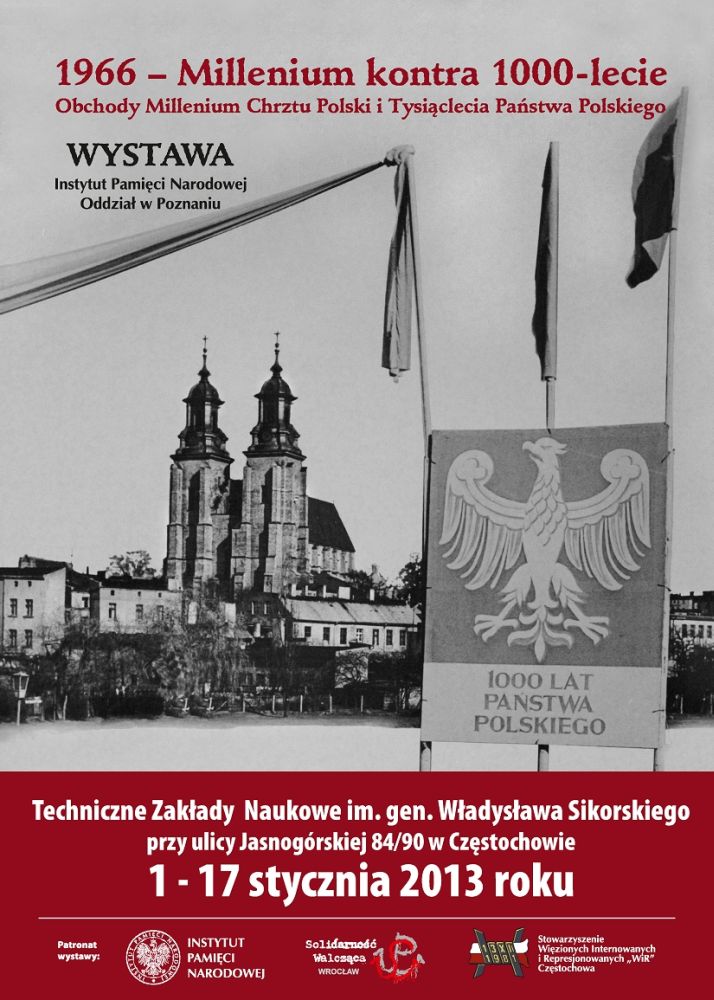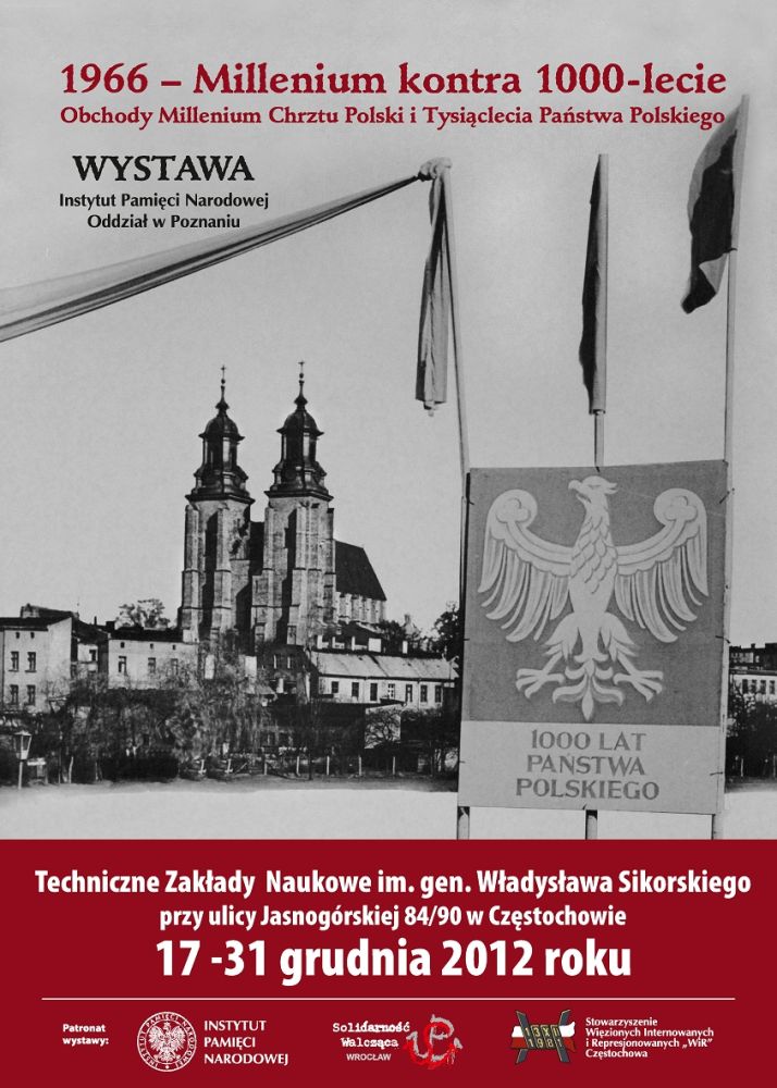 W dniach od 17 grudnia 2012 r. do 17 stycznia 2013 r. w Technicznych Zakładach Naukowych im. gen Władysława Sikorskiego w Częstochowie (ul. Jasnogórska 84/90) prezentowana będzie wystawa „1966 – Millenium kontra 1000-lecie”. Autorami ekspozycji są historycy z Oddziałowego Biura Edukacji Publicznej IPN w Poznaniu – dr Stanisław Jankowiak i Filip Leśniak. Wystawa przedstawia uroczyste obchody tysiąclecia przyjęcia przez Polskę chrześcijaństwa w 1966 r. oraz wysiłki podejmowane przez władze komunistyczne, aby przeszkodzić tym uroczystościom.