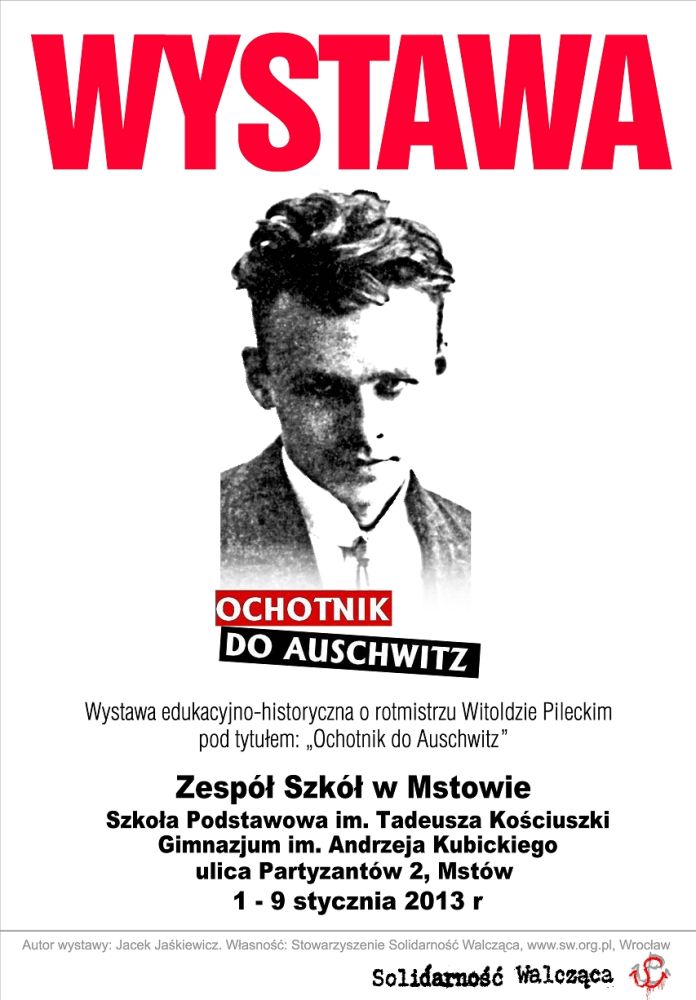 W dniach od 1 do 9 stycznia 2013 r. w Zespole Szkół w Mstowie – Szkoła Podstawowa im. Tadeusza Kościuszki, Gimnazjum im. Andrzeja Kubickiego (ul. Partyzantów 2) prezentowana jest wystawa „Rotmistrz Witold Pilecki – ochotnik do Auschwitz”. Ekspozycja została przygotowana przez Jacka Jaśkiewicza ze Stowarzyszenia Solidarność Walcząca. Organizatorem prezentacji wystawy jest OBEP IPN w Katowicach we współpracy z Zespołem Szkół w Mstowie i Stowarzyszeniem Solidarność Walcząca we Wrocławiu.