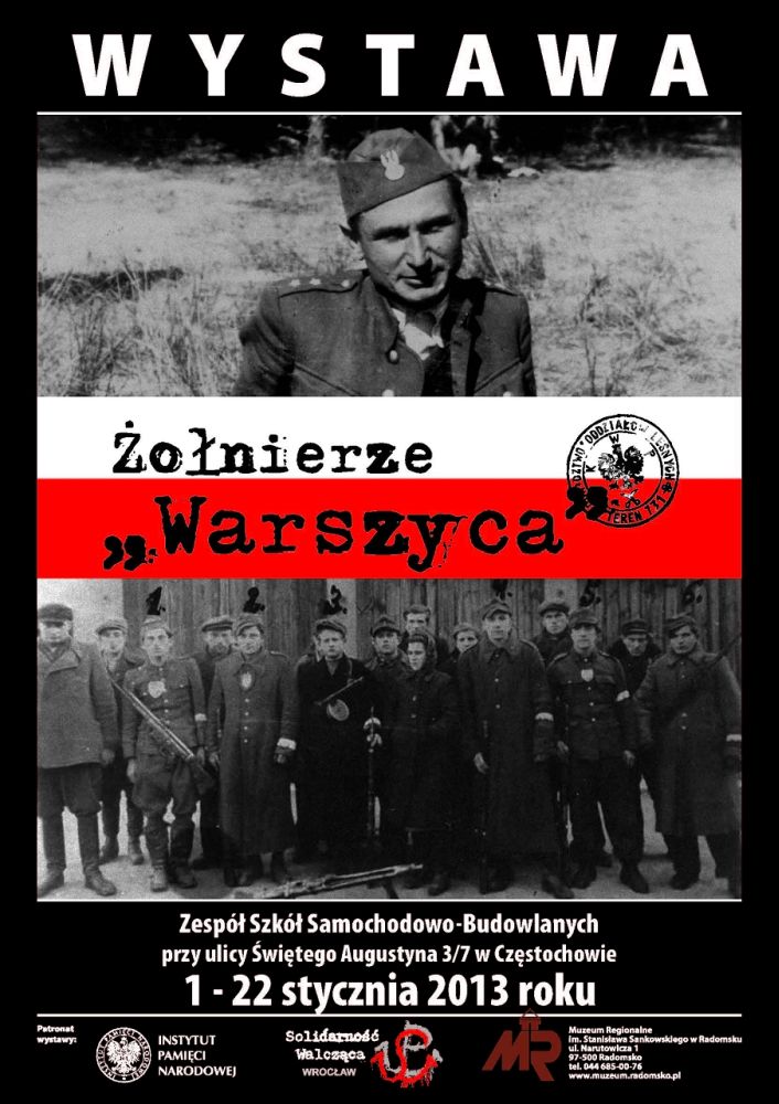 W dniach od 1 do 22 stycznia 2013 r. w Zespole Szkół Samochodowo-Budowlanych w Częstochowie (ul. Świętego Augustyna  3/7) prezentowana jest wystawa „Żołnierze »Warszyca«”, przygotowana przez OBEP IPN w Łodzi (2001). Ekspozycję wystawy zorganizował OBEP IPN w Katowicach przy współudziale Zespołu Szkół Samochodowo-Budowlanych w Częstochowie, Stowarzyszenia Solidarność Walcząca z Wrocławia oraz Muzeum Regionalnego im. Stanisława Sankowskiego w Radomsku.