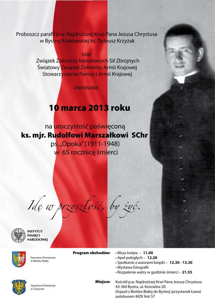 10 marca 2013 r. w kościele pw. Najdroższej Krwi Pana Jezusa Chrystusa w Bystrej (ul. Kościelna 20) odbędzie się uroczystość poświęcona ks. mjr. Rudolfowi Marszałkowi TChr ps. „Opoka” (1911–1948) w 65 rocznicę śmierci. Organizatorami spotkania są: proboszcz parafii pw. Najdroższej Krwi Pana Jezusa Chrystusa w Bystrej Krakowskiej ks. Tadeusz Krzyżak oraz Związek Żołnierzy Narodowych Sił Zbrojnych, Światowy Związek Żołnierzy Armii Krajowej, Stowarzyszenie Pamięci Armii Krajowej. Uroczystość odbędzie się pod patronatem honorowym Oddziału Instytutu Pamięci Narodowej w Katowicach.