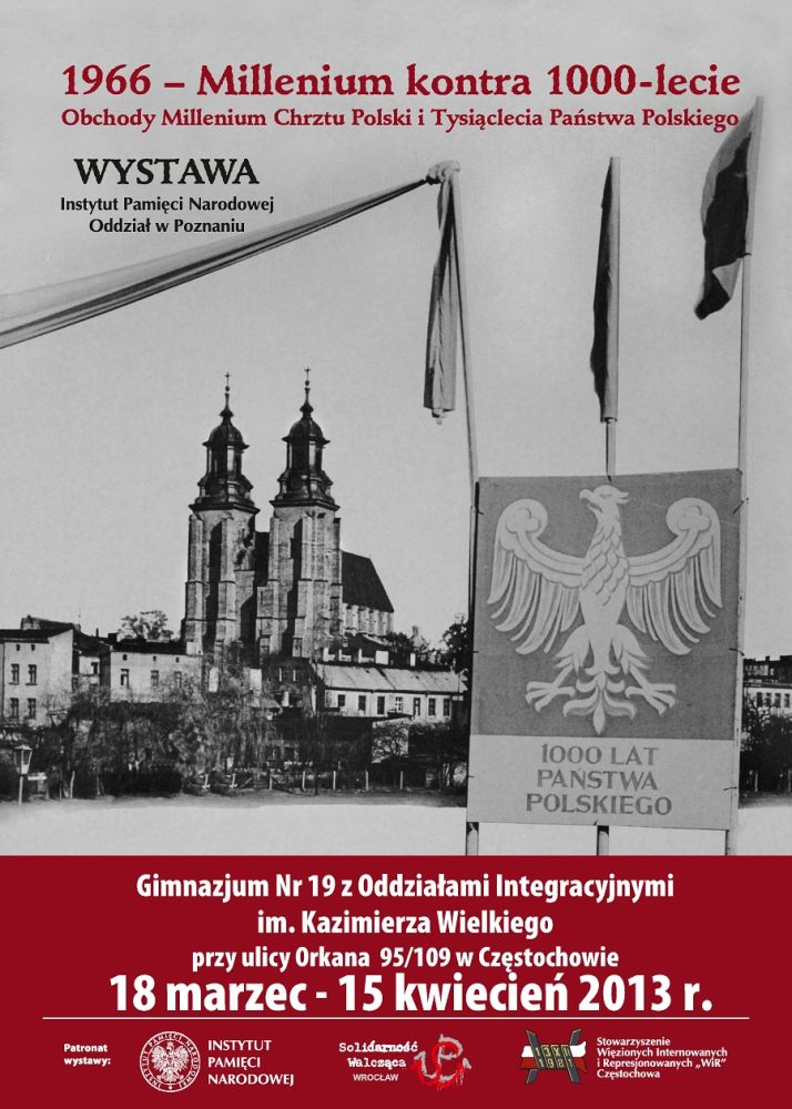 W dniach od 18 marca do 15 kwietnia 2013 r. w Gimnazjum nr 18 z Oddziałami Integracyjnymi im. Kazimierza Wielkiego w Częstochowie (ul. Orkana 95/109) prezentowana jest wystawa „1966 – Millenium kontra 1000-lecie”. Autorami ekspozycji są historycy z Oddziałowego Biura Edukacji Publicznej IPN w Poznaniu – dr Stanisław Jankowiak i Filip Leśniak. Wystawa przedstawia uroczyste obchody tysiąclecia przyjęcia przez Polskę chrześcijaństwa w 1966 r. oraz wysiłki podejmowane przez władze komunistyczne, aby przeszkodzić tym uroczystościom.