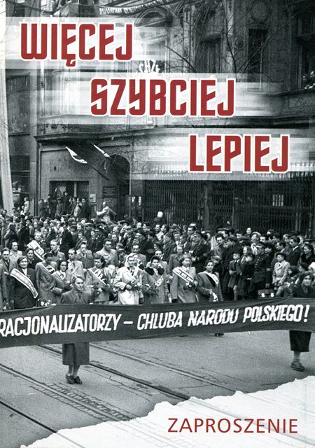 Te i wiele innych informacji można zobaczyć na wystawie „Więcej – Szybciej – Lepiej”, na której przedstawione zostały zarówno stare fotografie, jak i archiwalne dokumenty obrazujące rozwój współzawodnictwa pracy. A wszystko opatrzone zostało odpowiednim komentarzem, który przybliża widzowi tamtą rzeczywistość.