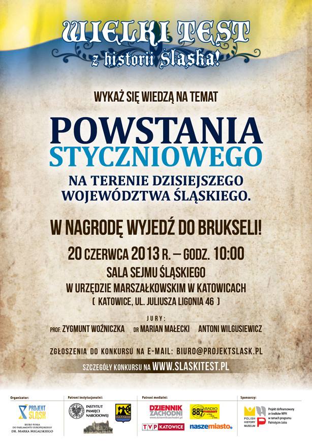 20 czerwca 2013 r.  w Sali Sejmu Śląskiego w gmachu Śląskiego Urzędu Wojewódzkiego w Katowicach (ul. Ligonia 46) odbyła się trzecia edycja Testu z Historii Śląska „Powstanie Styczniowe na terenie dzisiejszego województwa śląskiego”.