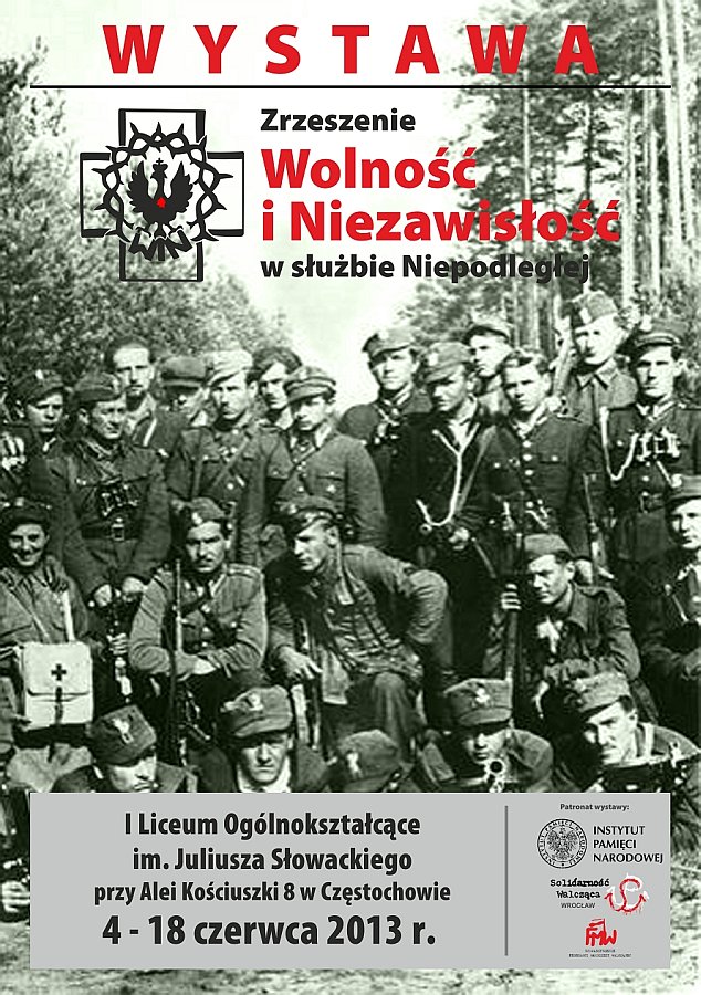 W dniach od 4 do 18 czerwca 2013 r. w I Liceum Ogólnokształcącym im. Juliusza Słowackiego w Częstochowie (Aleja Kościuszki 8) prezentowana jest wystawa „Zrzeszenie »Wolność i Niezawisłość« w służbie Niepodległej”. Organizatorem prezentacji wystawy jest OBEP IPN w Katowicach i w Krakowie we współpracy z I Liceum Ogólnokształcącym im. Juliusza Słowackiego w Częstochowie, Stowarzyszeniem Solidarność Walcząca we Wrocławiu oraz Stowarzyszeniem Federacji Młodzieży Walczącej.