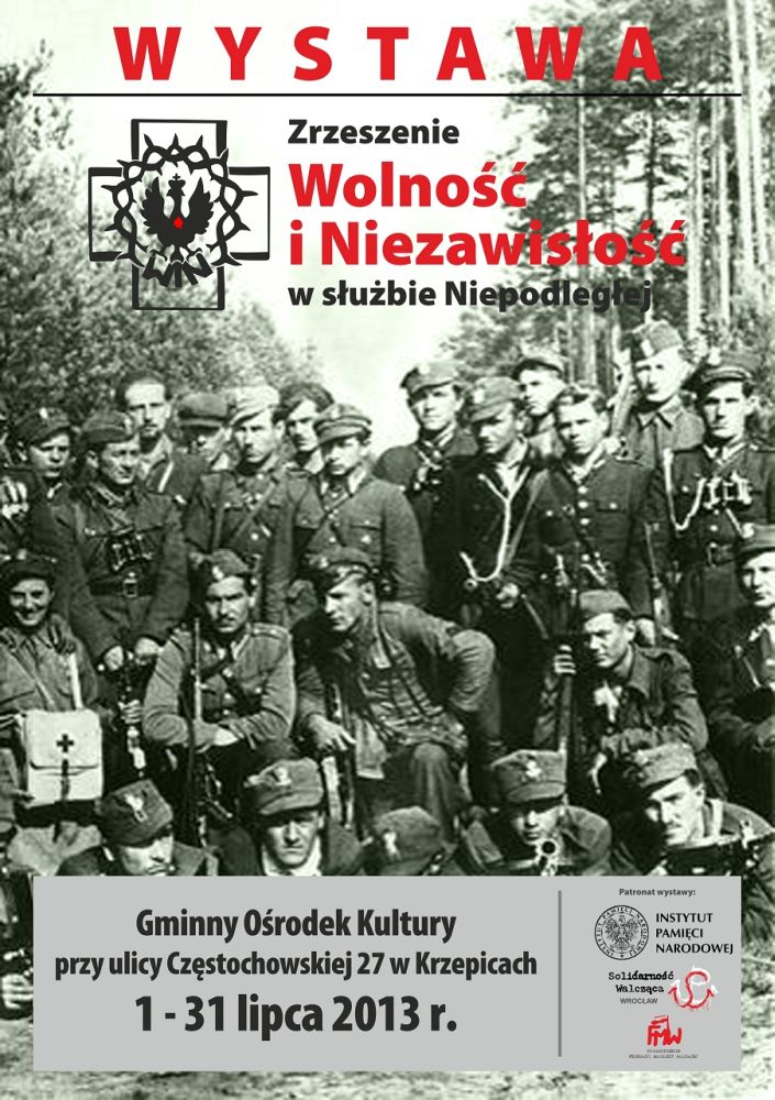 W dniach od 1 do 31 lipca 2013 r. w Gminnym Ośrodku Kultury w Krzepicach (ul. Częstochowska 27) prezentowana będzie wystawa „Zrzeszenie »Wolność i Niezawisłość« w służbie Niepodległej”. Organizatorem prezentacji wystawy jest OBEP IPN w Katowicach i w Krakowie we współpracy z Gminnym Ośrodkiem Kultury w Krzepicach,  Stowarzyszeniem Solidarność Walcząca we Wrocławiu oraz Stowarzyszeniem Federacji Młodzieży Walczącej.