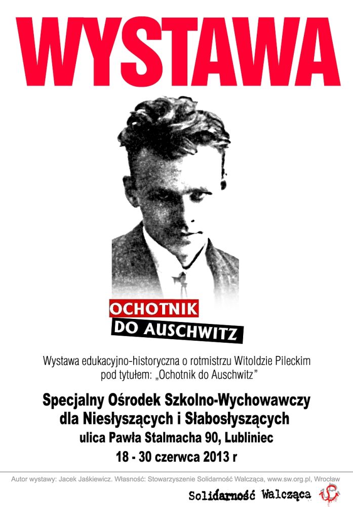 W dniach od 18 do 30 czerwca 2013 r. w Specjalnym Ośrodku Szkolno-Wychowawczym dla Niesłyszących i Słabosłyszących w Lublińcu (ul. Pawła Stalmacha 90) prezentowana jest wystawa „Rotmistrz Witold Pilecki – ochotnik do Auschwitz”. Ekspozycja została przygotowana przez Jacka Jaśkiewicza ze Stowarzyszenia Solidarność Walcząca. Organizatorem prezentacji wystawy jest OBEP IPN w Katowicach we współpracy z Specjalnym Ośrodkiem Szkolno-Wychowawczym dla Niesłyszących i Słabosłyszących w Lublińcu i Stowarzyszeniem Solidarność Walcząca we Wrocławiu.