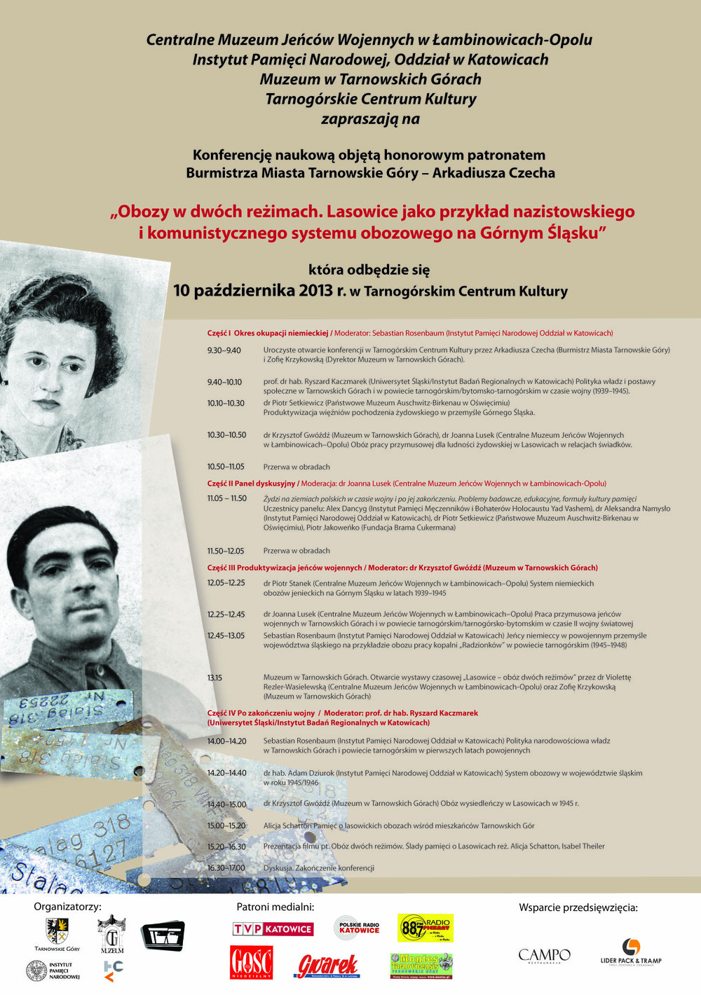 13.15 – Muzeum w Tarnowskich Górach – otwarcie wystawy czasowej „Lasowice – obóz dwóch reżimów" przez dr Violettę Rezler-Wasielewską (Centralne Muzeum Jeńców Wojennych w Łambinowicach-Opolu) oraz Zofię Krzykowską (Muzeum w Tarnowskich Górach)