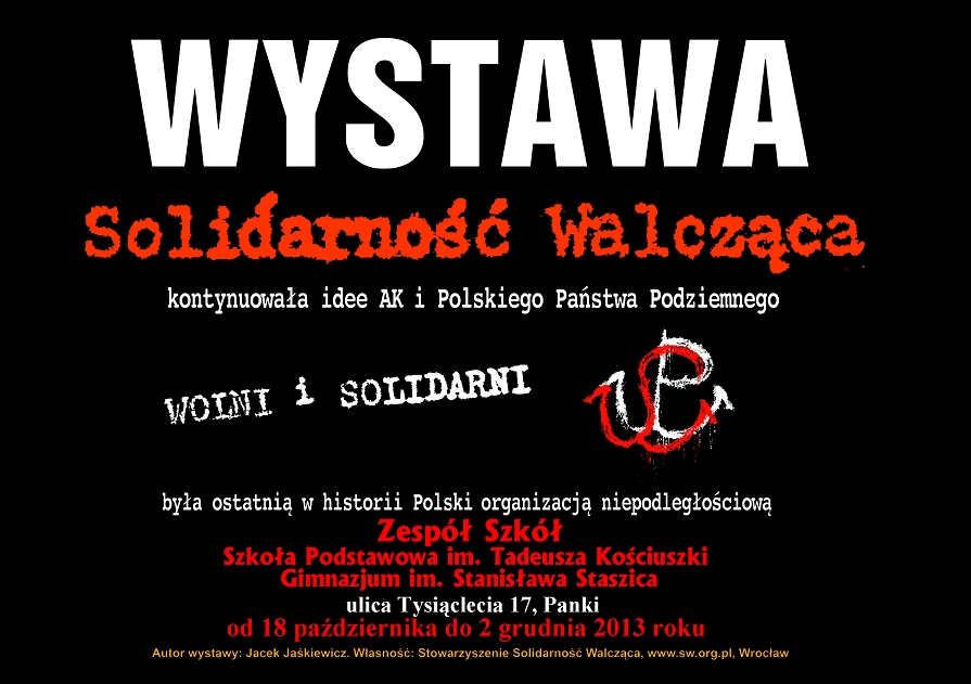 W dniach od 18 listopada do 2 grudnia 2013 r. w Zespole Szkół (Szkoła Podstawowa im. Tadeusza Kościuszki, Gimnazjum im. Stanisława Staszica) w Pankach (ul. Tysiąclecia 17) prezentowana jest wystawa „Wolni i Solidarni", przygotowana przez Jacka Jaśkiewicza z wrocławskiego Stowarzyszenia Solidarność Walcząca. Organizatorem prezentacji wystawy jest OBEP IPN w Katowicach we współpracy z Zespołem Szkół w Pankach i Stowarzyszeniem Solidarność Walcząca we Wrocławiu.