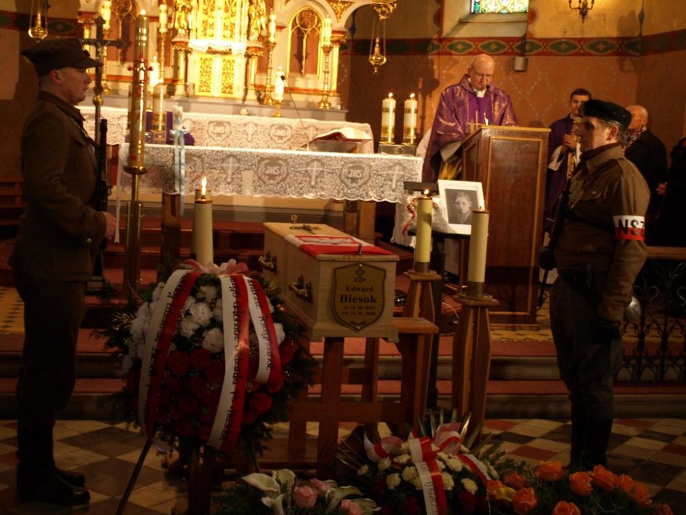 7 grudnia 2013 r. w Mazańcowicach koło Bielska-Białej odbył się pogrzeb plutonowego Edwarda Biesoka, 19-letniego żołnierza Narodowych Sił Zbrojnych, poległego w 1946 roku w potyczce z milicjantami.