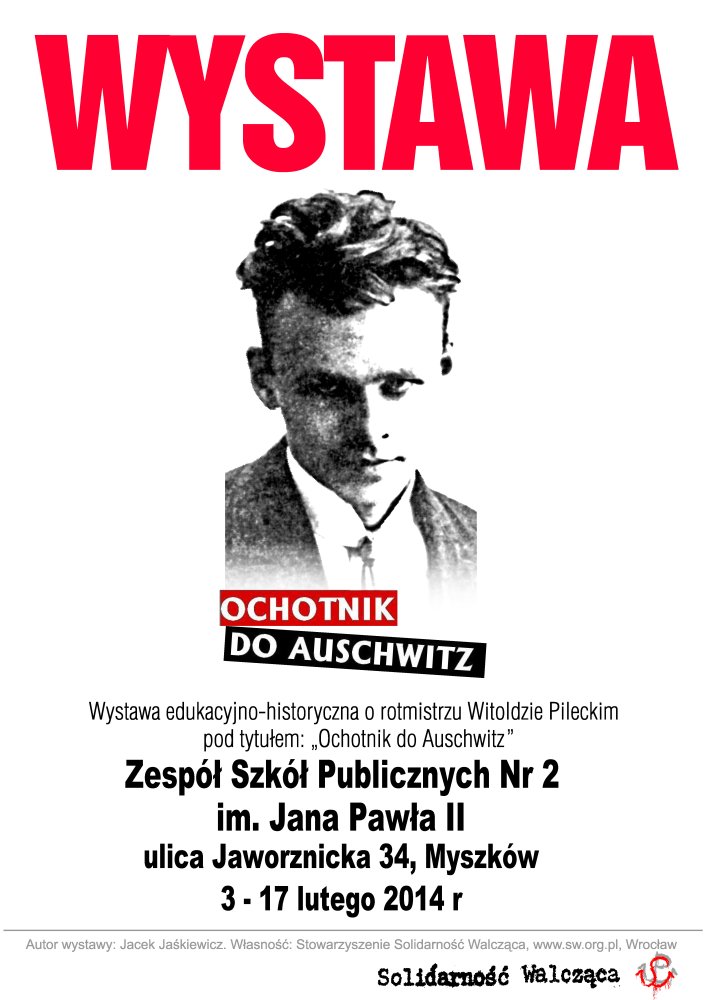 W dniach od 3 do 17 lutego 2014 r. w Zespole Szkół Publicznych Nr 2 im. Jana Pawła II w Myszkowie (ul. Jaworznicka 34) prezentowana jest wystawa „Rotmistrz Witold Pilecki – ochotnik do Auschwitz". Ekspozycja została przygotowana przez Jacka Jaśkiewicza ze Stowarzyszenia Solidarność Walcząca. Organizatorem prezentacji wystawy jest OBEP IPN w Katowicach we współpracy z Zespołem Szkół Publicznych Nr 2 im. Jana Pawła II w Myszkowie i Stowarzyszeniem Solidarność Walcząca we Wrocławiu.