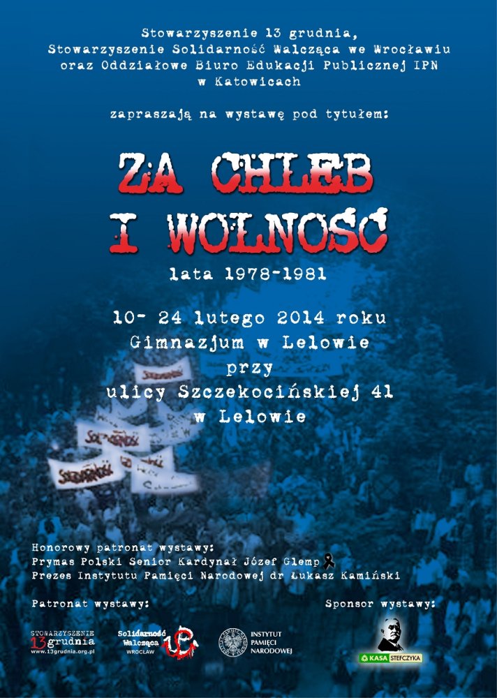 W dniach od 10 do 24 lutego 2014 r. w Gimnazjum w Lelowie (ul. Szczekocińska 41) prezentowana jest wystawa „Za chleb i wolność. Lata 1978–1981". Ekspozycję wystawy zorganizował OBEP IPN w Katowicach przy współudziale Gimnazjum w Lelowie, Stowarzyszenia „13 Grudnia" oraz Stowarzyszenia Solidarność Walcząca z Wrocławia.