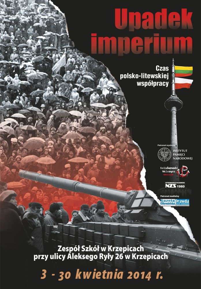 W dniach od 3 do 30 kwietnia 2014 r. w Zespole Szkół w Krzepicach (ul. Aleksego Ryły 26) prezentowana jest wystawa „Upadek imperium. Czas polsko-litewskiej współpracy".