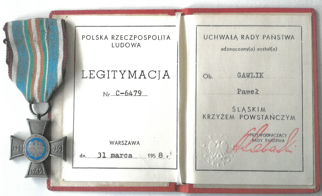 Ppor. Paweł Walenty Gawlik urodził się 14 lutego 1895 r. w Tarnowskich Górach. Był synem Pawła i Ewy. W latach 1916-1917 odbywał służbę wojskową w armii niemieckiej. Natomiast w latach 1920-1921 brał czynny udział w II i III powstaniu śląskim. Walczył w szeregach baonu tarnogórskiego pod dowództwem Stefana Gryca. W latach 1932-39 kolportował gazetę „Polonia” W 1939 r. brał udział w wojnie obronnej. Został zmobilizowany w ostatnich dniach sierpnia. Wstąpił do wojska stacjonującego w Zamościu. Do Rept Śląskich wrócił 13 września. Został aresztowany przez Gestapo na 8 dni, a następnie skierowany do pracy w kopalni w Miechowicach (niem. Miechowitz). Po wyzwoleniu podjął pracę w kopalni „Bytom”. Należał do Związku Powstańców Śląskich, Polskiego Związku Ziem Zachodnich, Związku Weteranów Powstań Śląskich oraz Związku Bojowników o Wolność i Demokrację. Został odznaczony Śląskim Krzyżem Powstańczym (1958 r., legit. nr C-6479), Krzyżem Kawalerskim Orderu Odrodzenia Polski (1966 r., legit. nr K-22143) oraz Brązowym Krzyżem Zasługi (1951 r., legit. nr 107187).